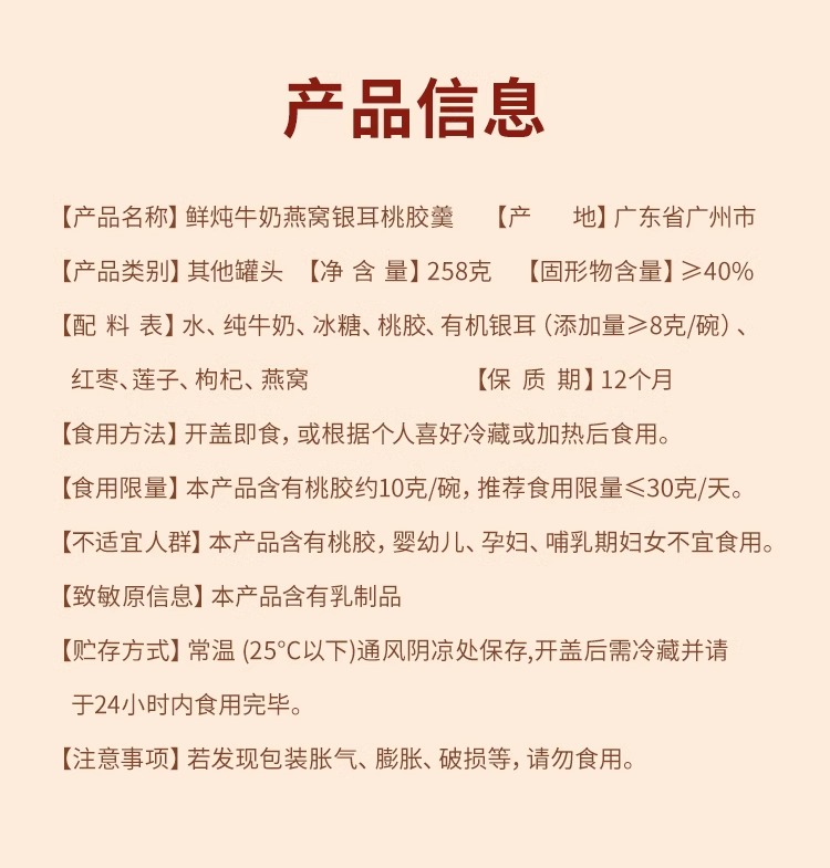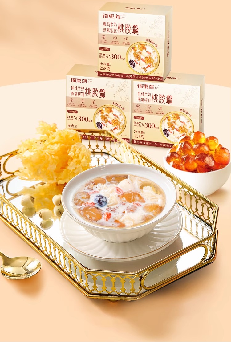 福东海 鲜炖牛奶燕窝银耳桃胶羹 258克 早餐粥五谷杂粮滋补营养代餐