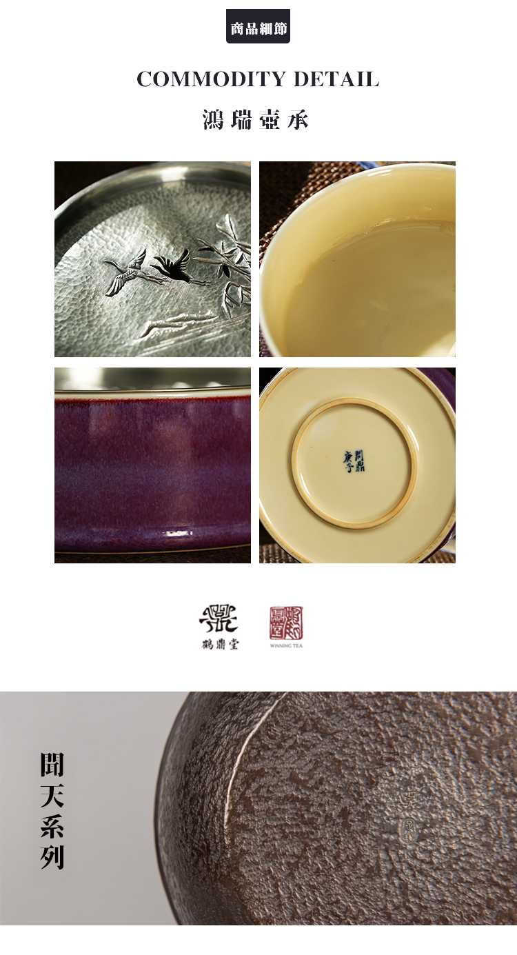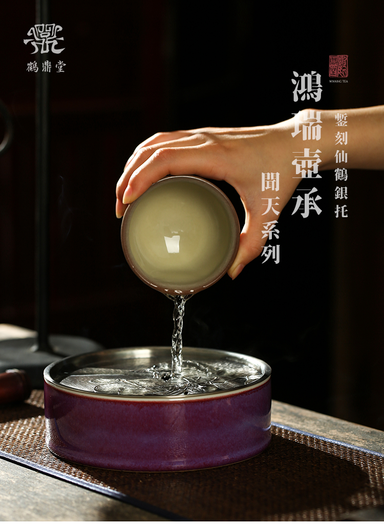 鹤鼎堂 闻天系列钧瓷鸿瑞壶承錾刻仙鹤银托(缺货)