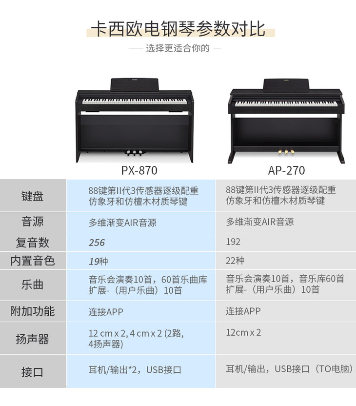 卡西欧Casio卡西欧px870电钢琴88键重锤成人家用专业演奏数码钢琴