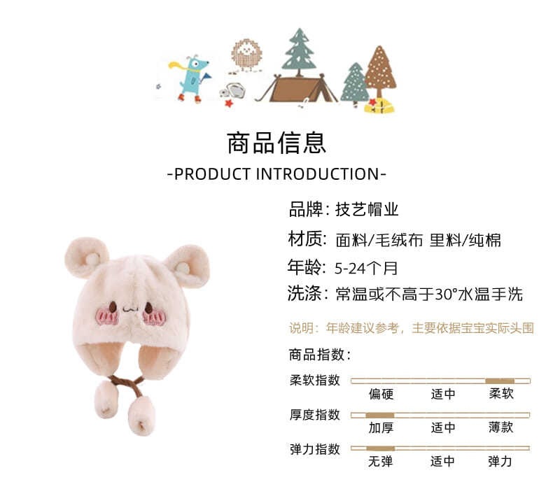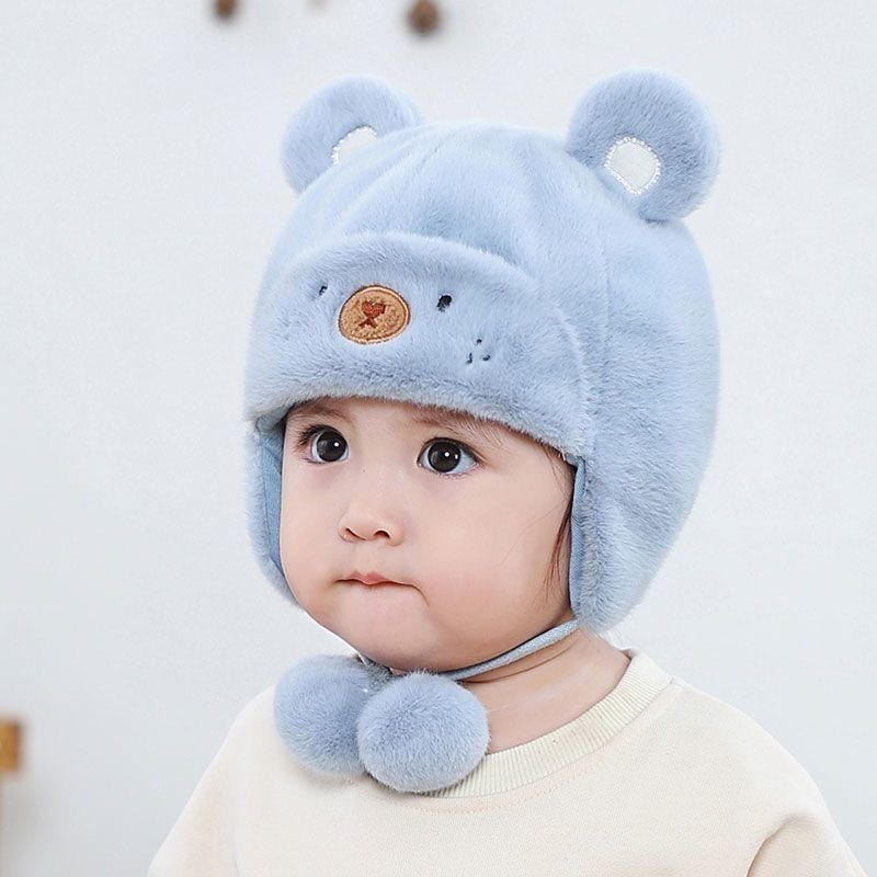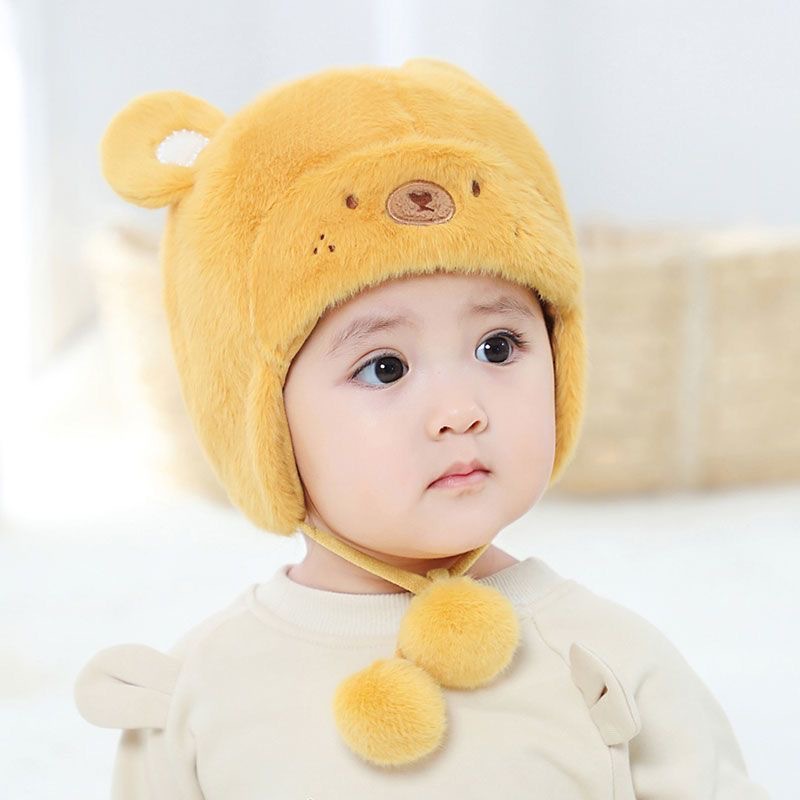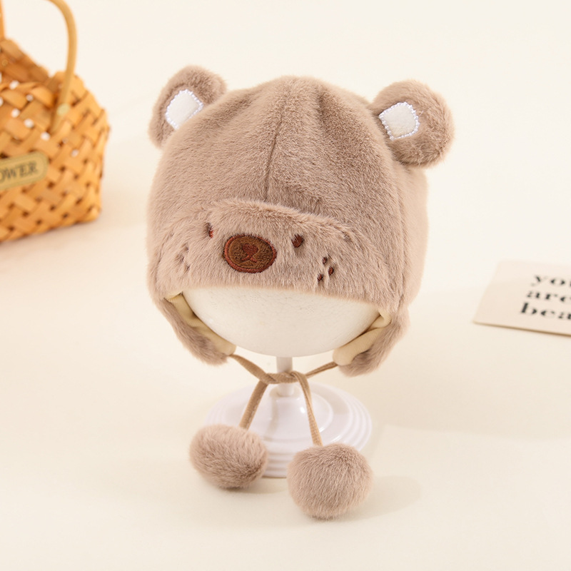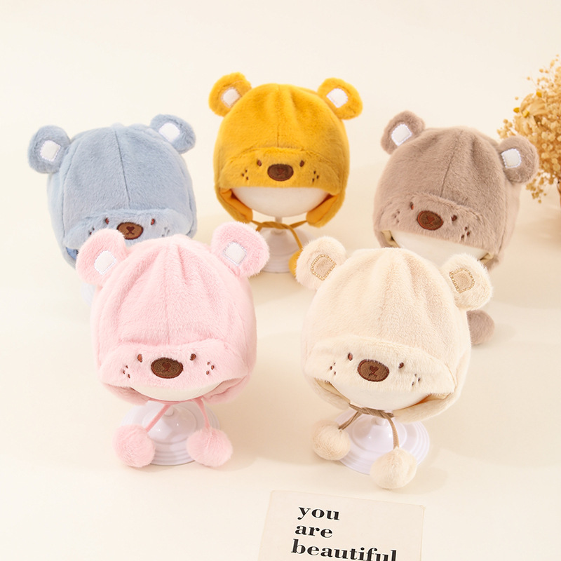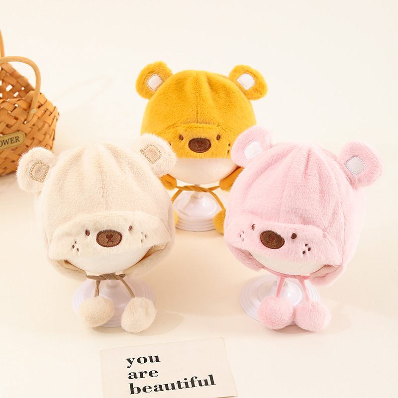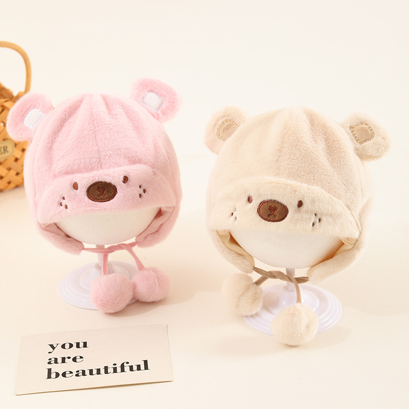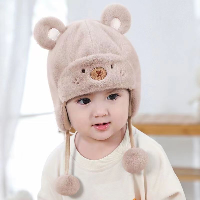 婴儿帽子秋冬款男宝宝女可爱超萌加厚保暖毛绒防风网红护耳儿童