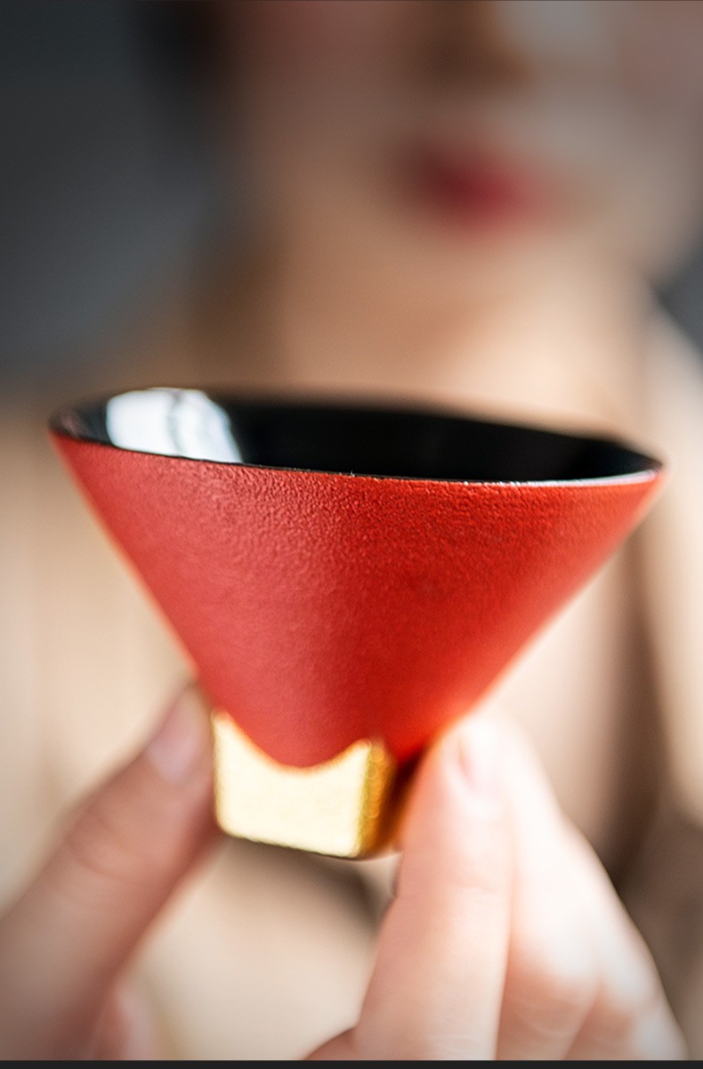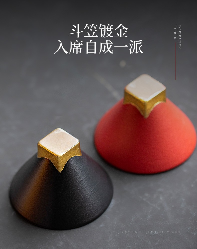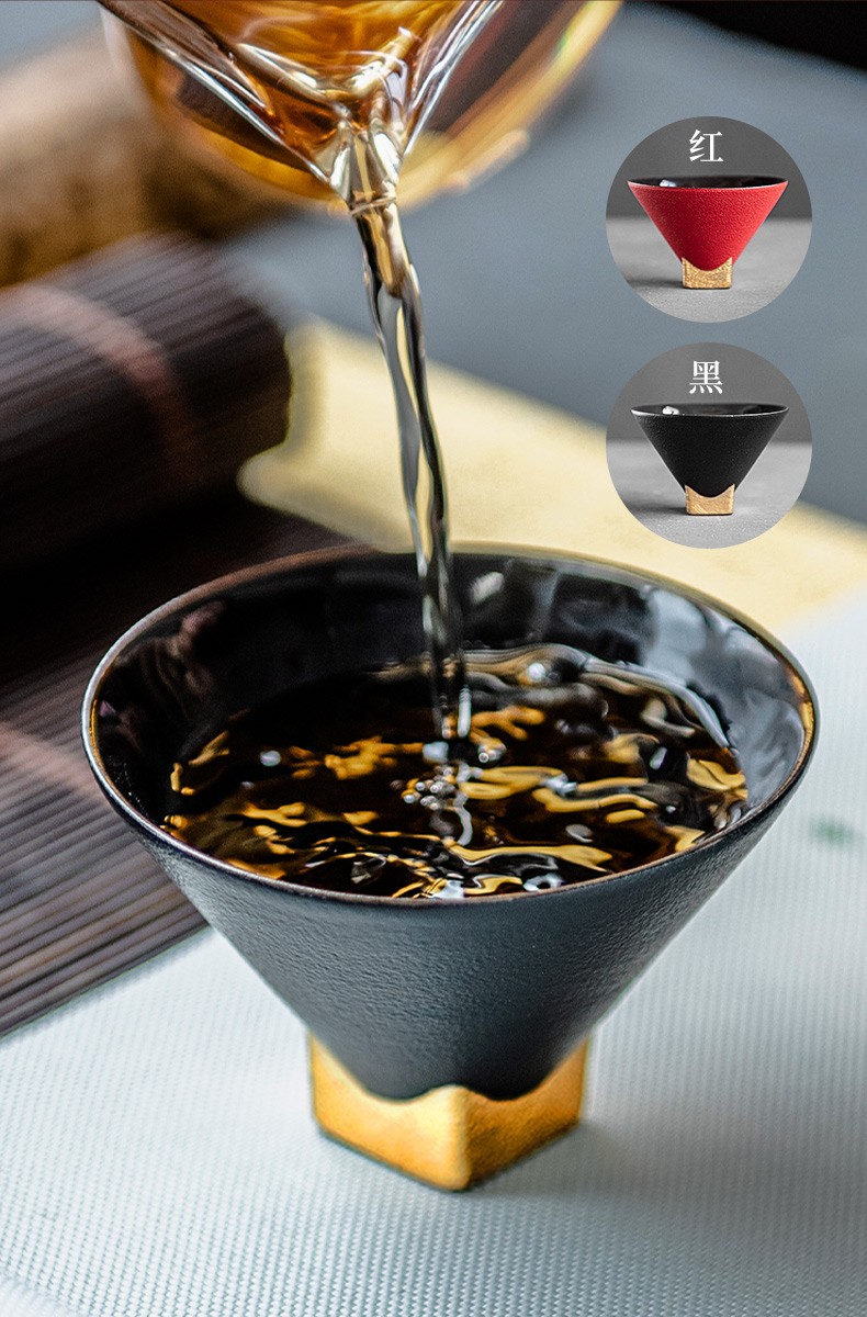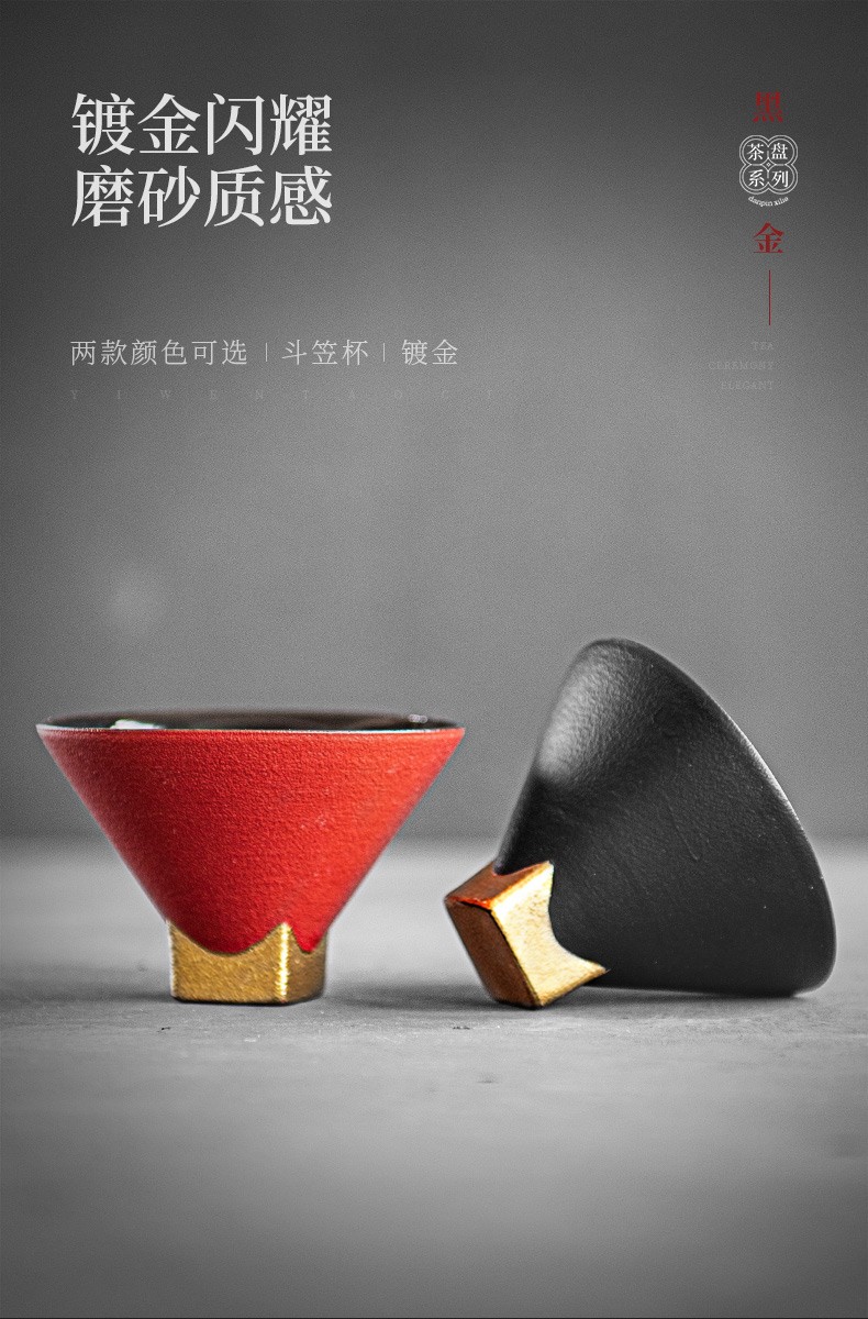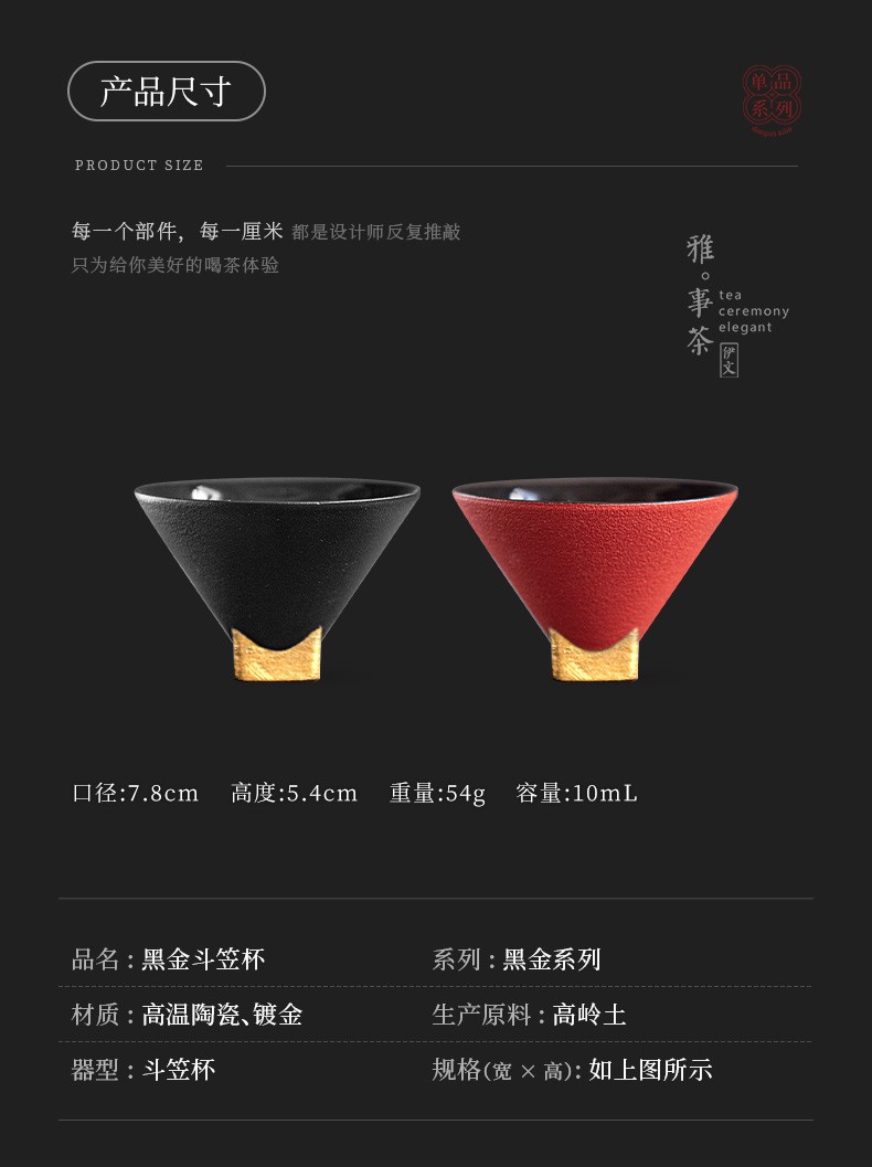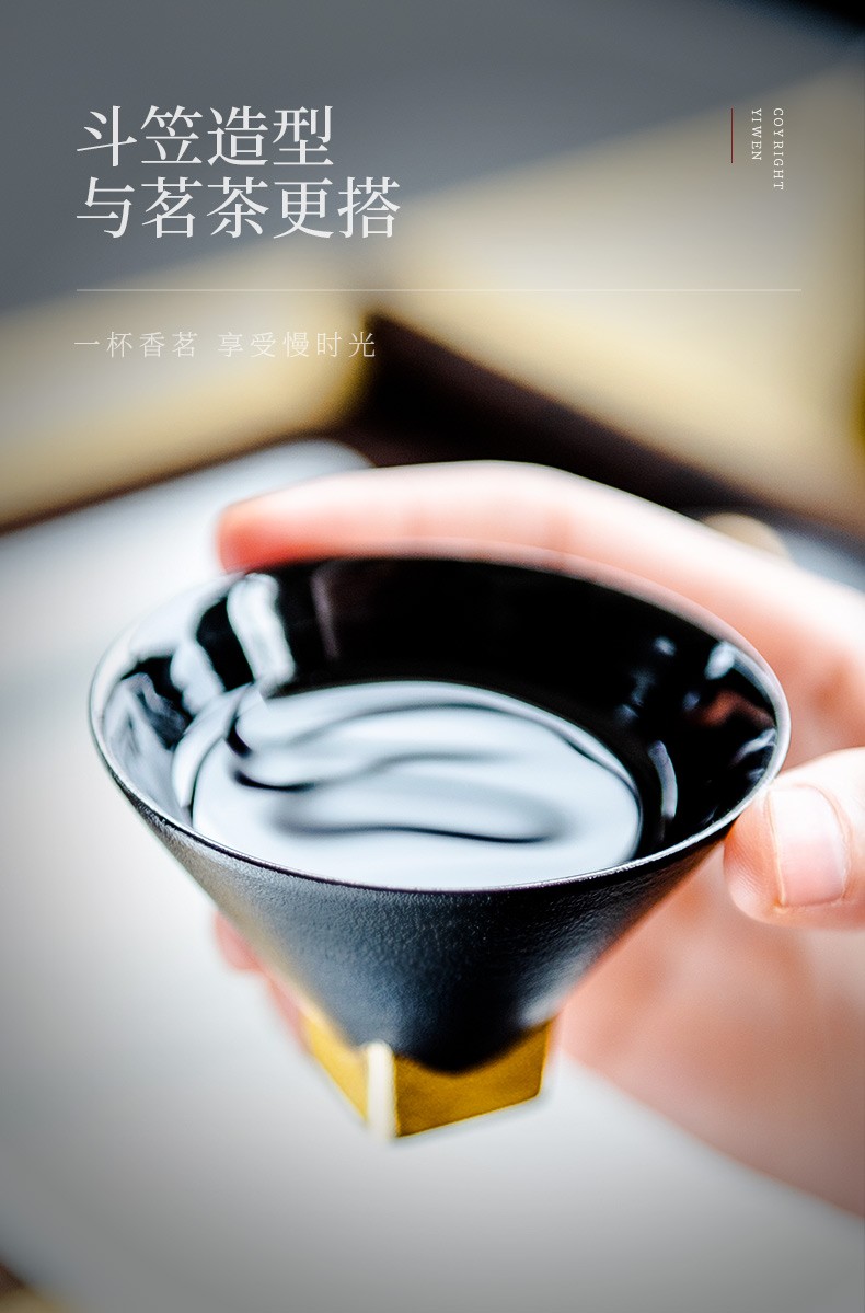 陶瓷黑金斗笠杯品茗杯陶瓷家用日式功夫茶具小茶杯主人单杯 黑金斗笠杯-黑L1f