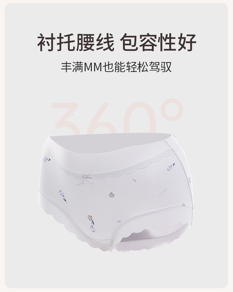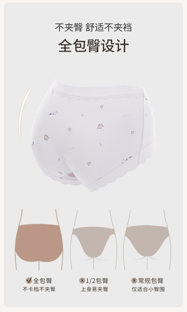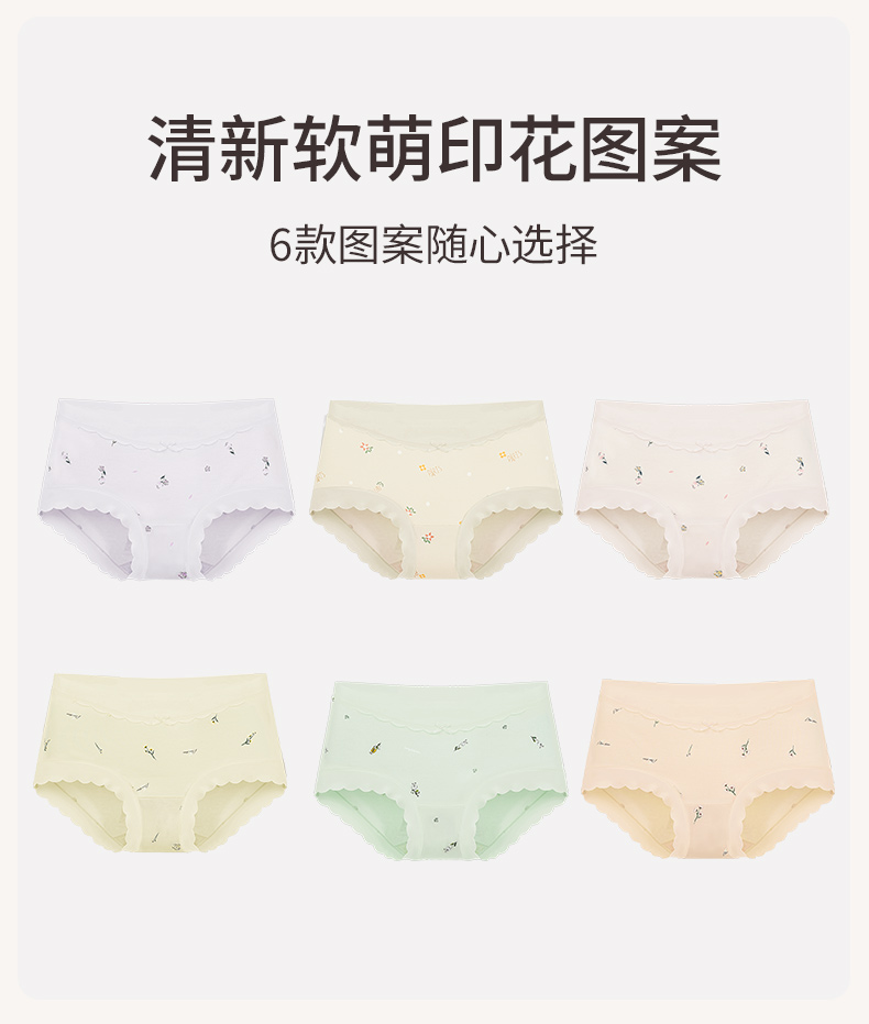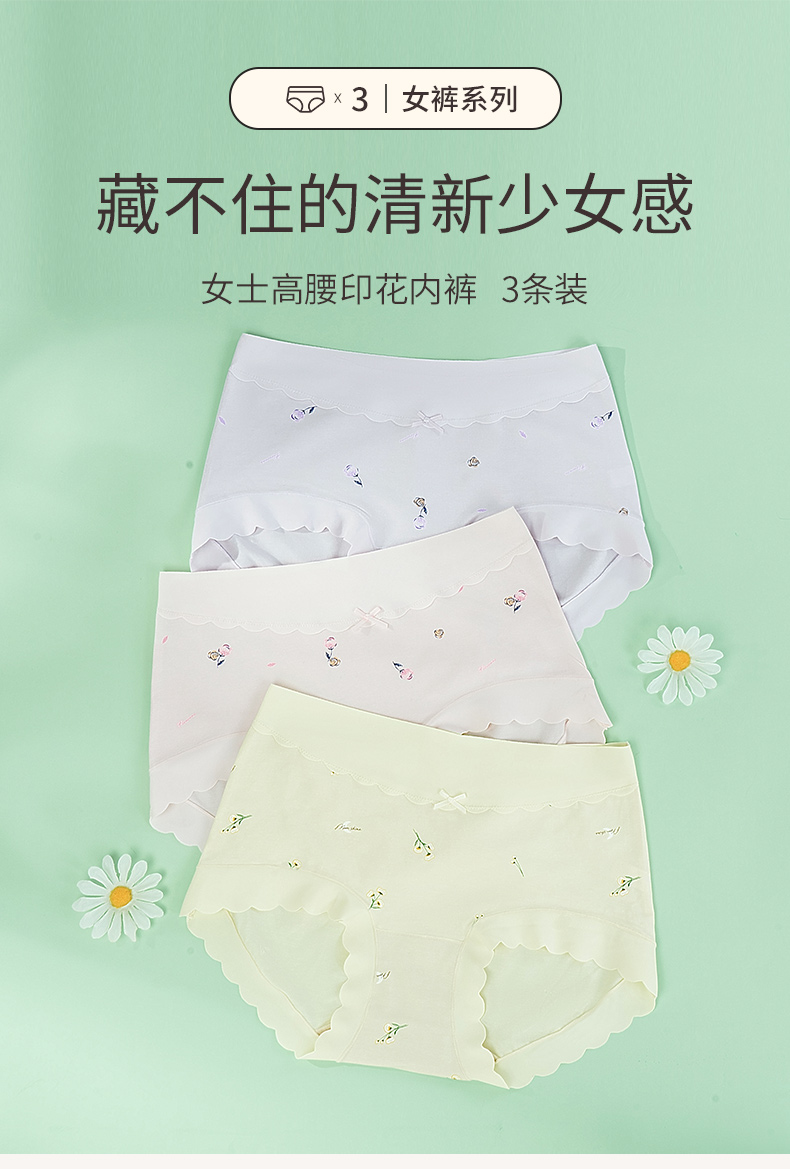 女士高腰印花内裤3条装柔软亲肤弹性不勒全包臀清新