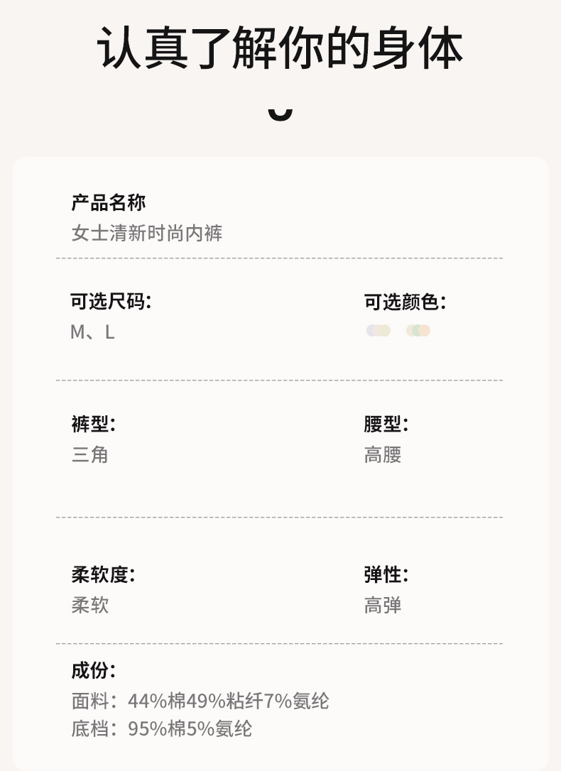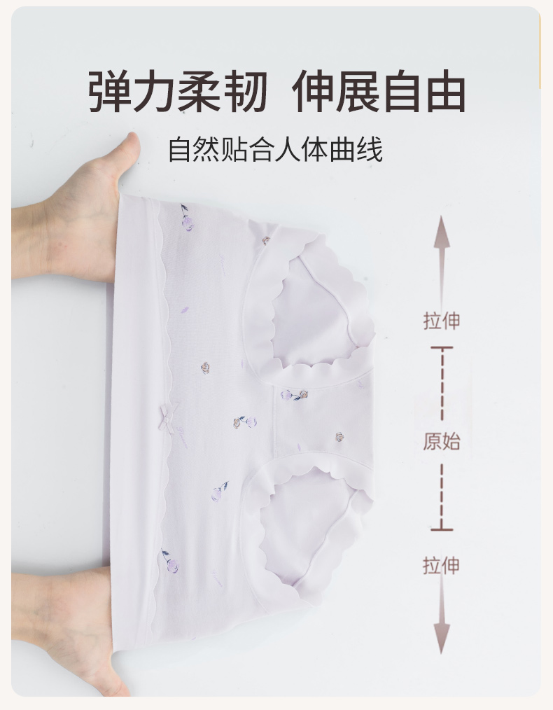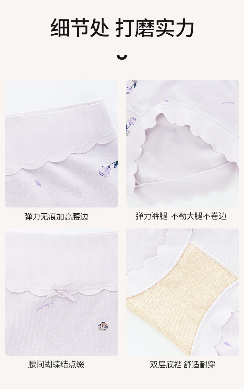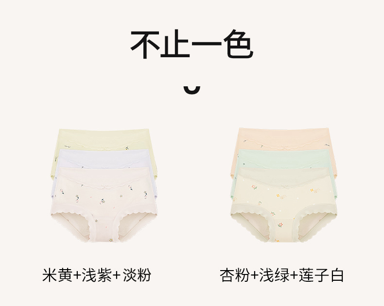 女士高腰印花内裤3条装柔软亲肤弹性不勒全包臀清新