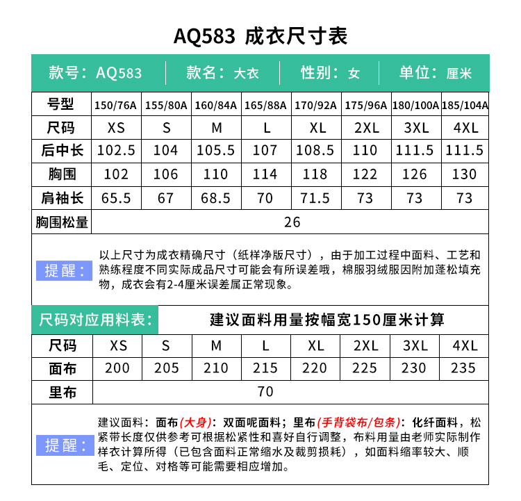 裁缝学苑AQ583赫本风双面羊毛大衣纸样双面羊绒女装中长款外套打版裁剪