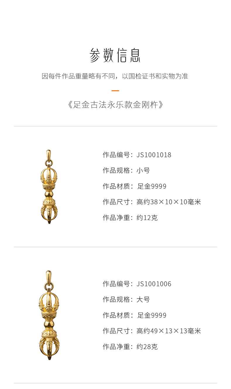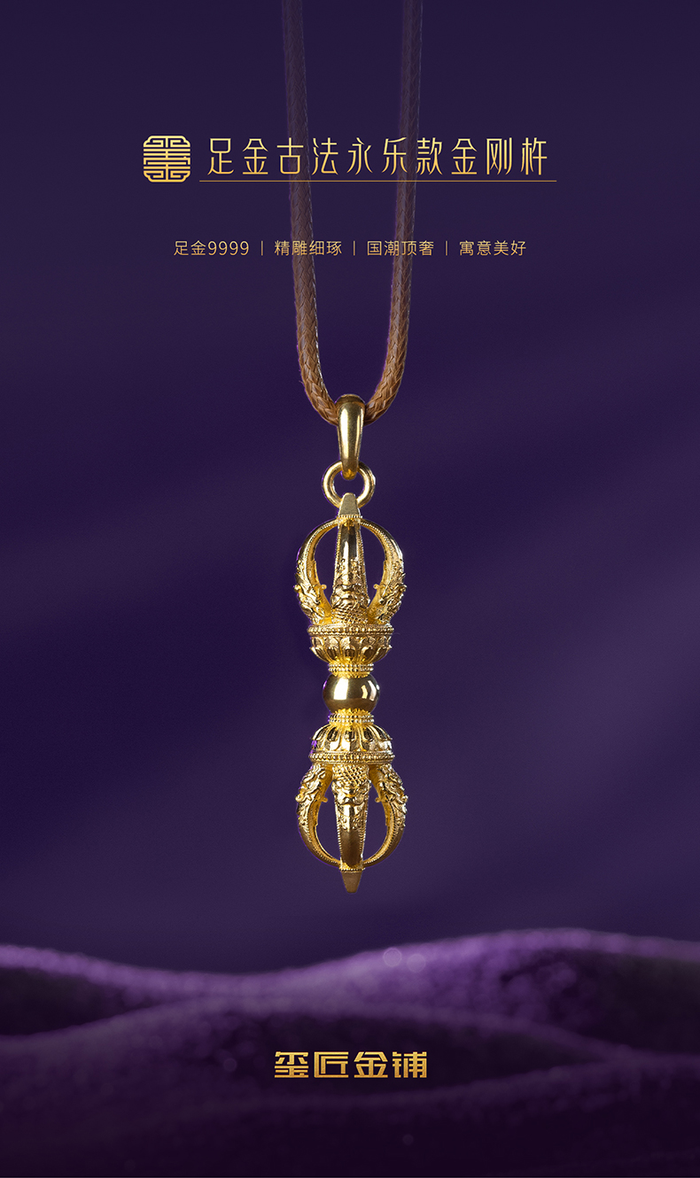玺匠金铺《足金古法永乐款金刚杵》足金9999黄金吊坠 吉祥饰品挂件