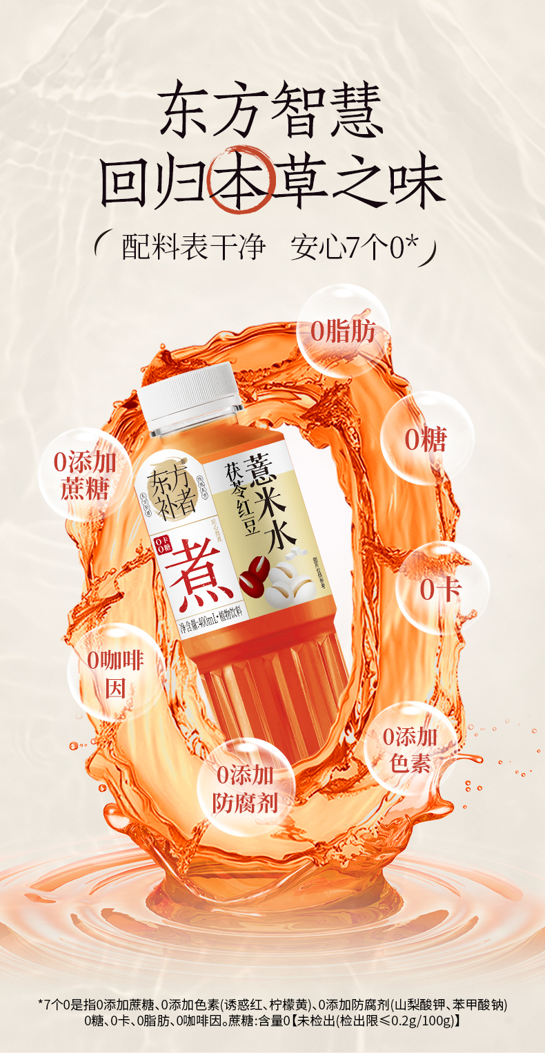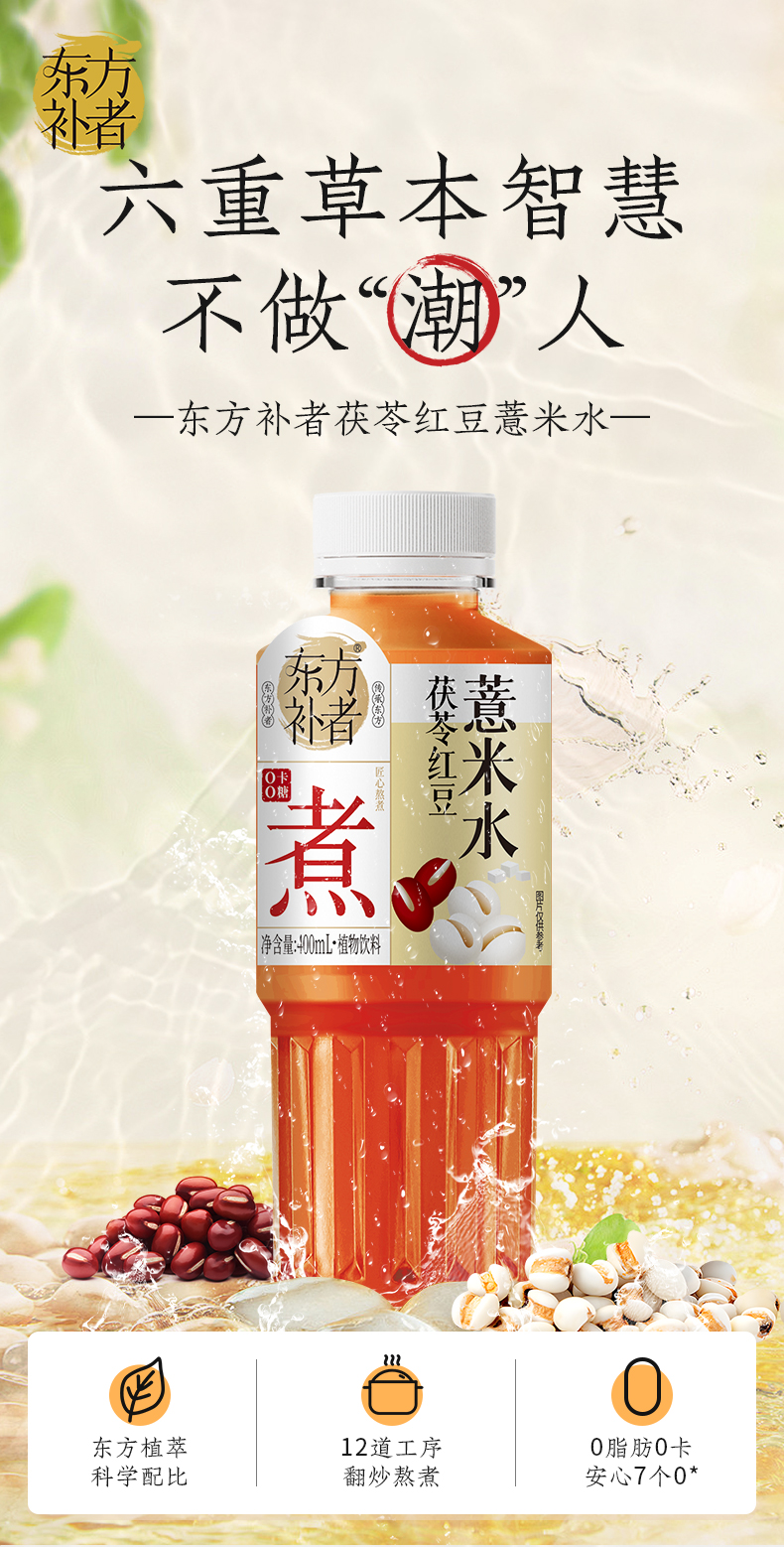 轻上茯苓红豆/冬瓜荷叶薏米水0卡0糖含益生元植物饮料400ml