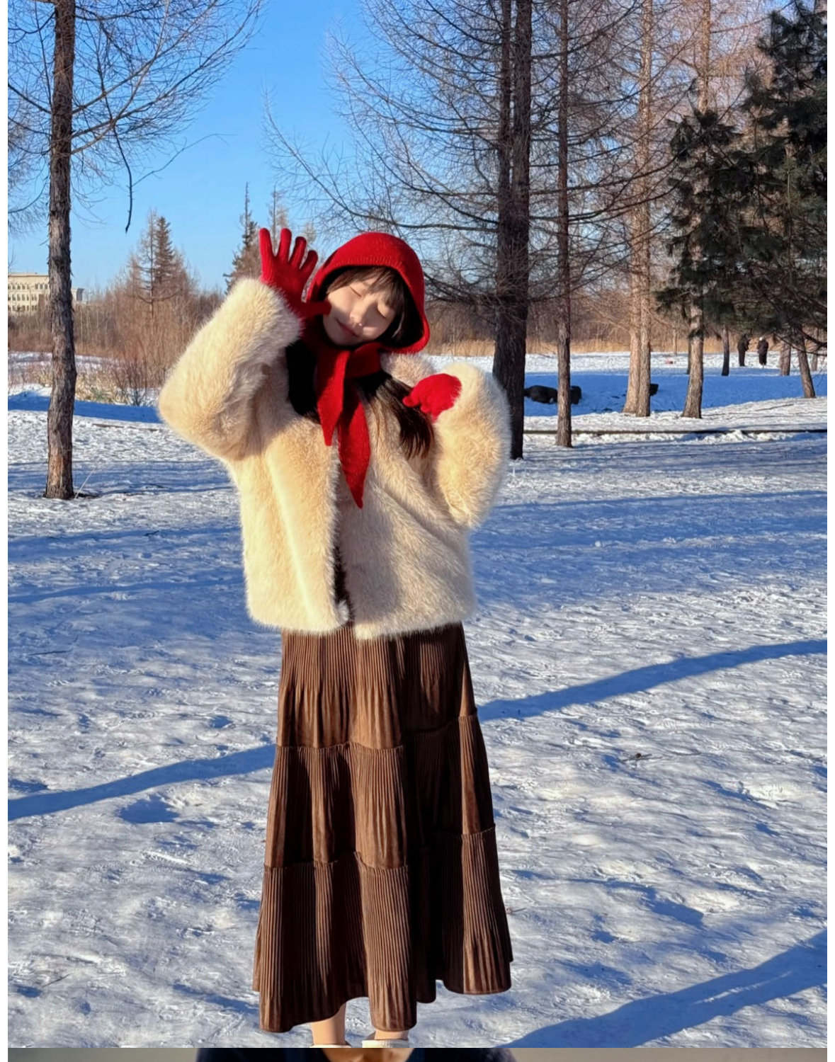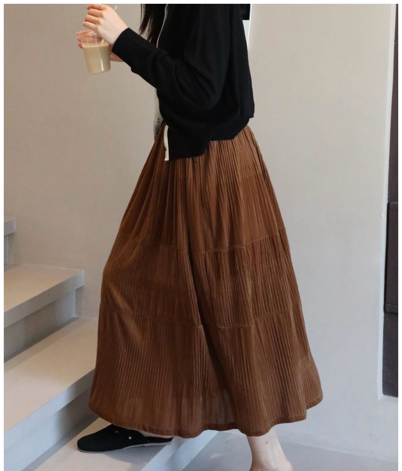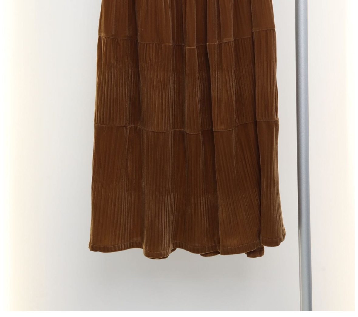 【Di*or同款】SUSX真丝丝绒焦糖褶皱半裙C1225073(下单3-7天发货)