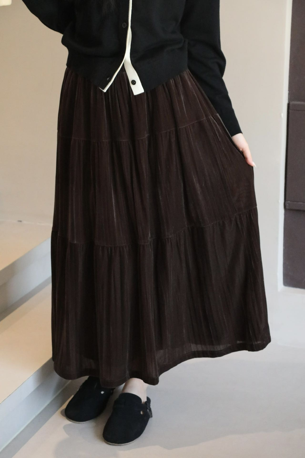 【Di*or同款】SUSX真丝丝绒褶皱半裙C1225073(下单3-7天发货)