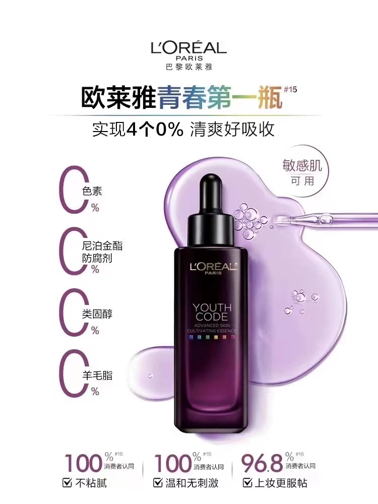 【买1送1 两瓶150ml】欧莱雅 第四代黑精华 补水保湿 二类酵母紧致改善纹理小黑瓶 紧致淡纹肌底液 75ml/瓶