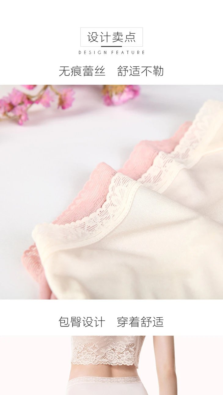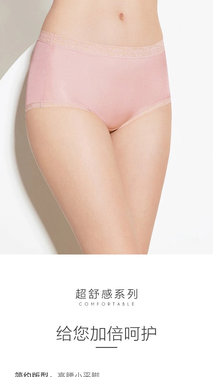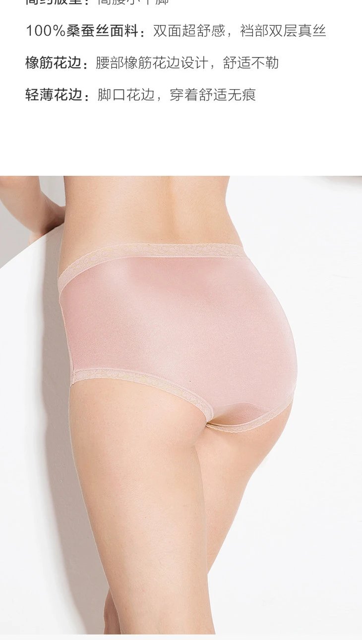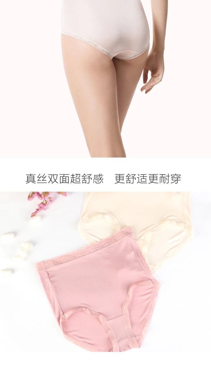 【2条装】金三塔桑蚕丝真丝内裤女士舒适高腰纯色透气蕾丝花边平角内裤(私密物品不支持退换) NZF3C211