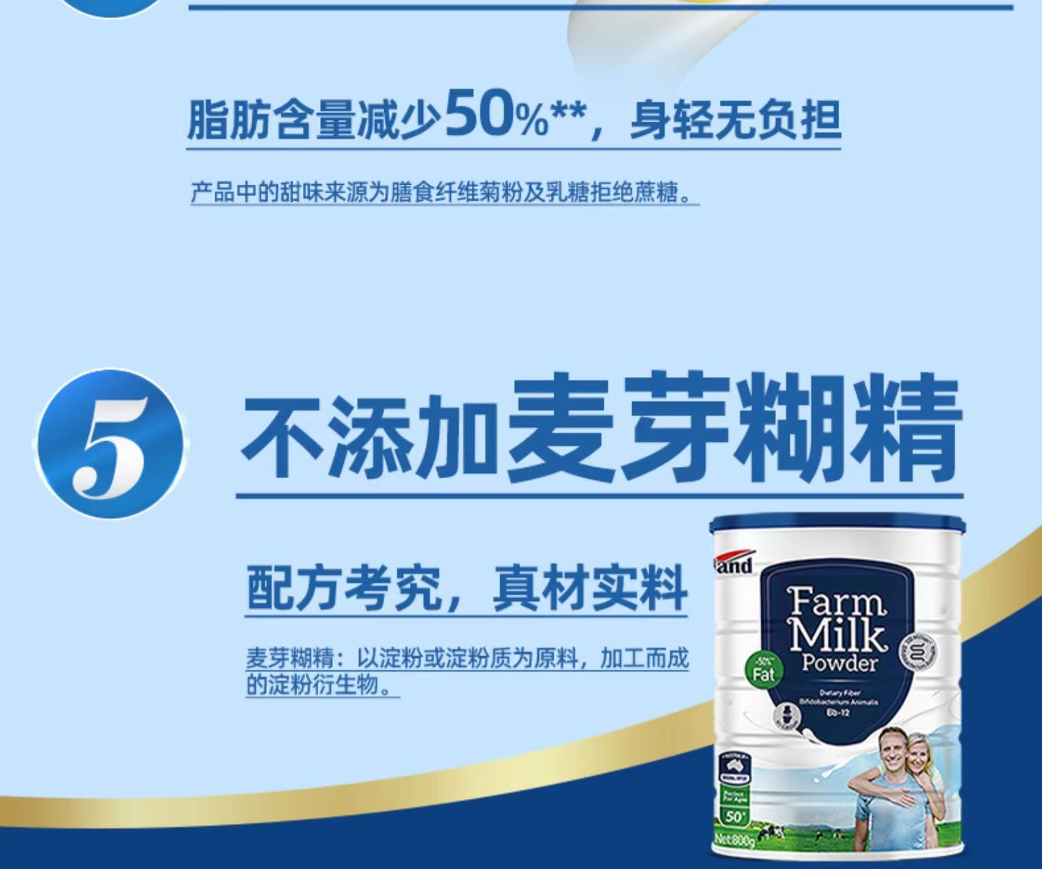 纽仕兰牧场中老年奶粉 小蓝盾 800g