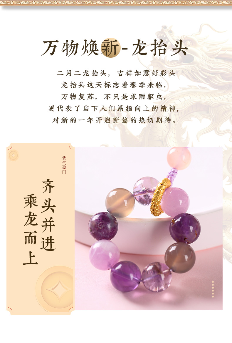 【事业】九紫离火腾龙手链紫幽灵貔貅手链 男女同款水晶手链