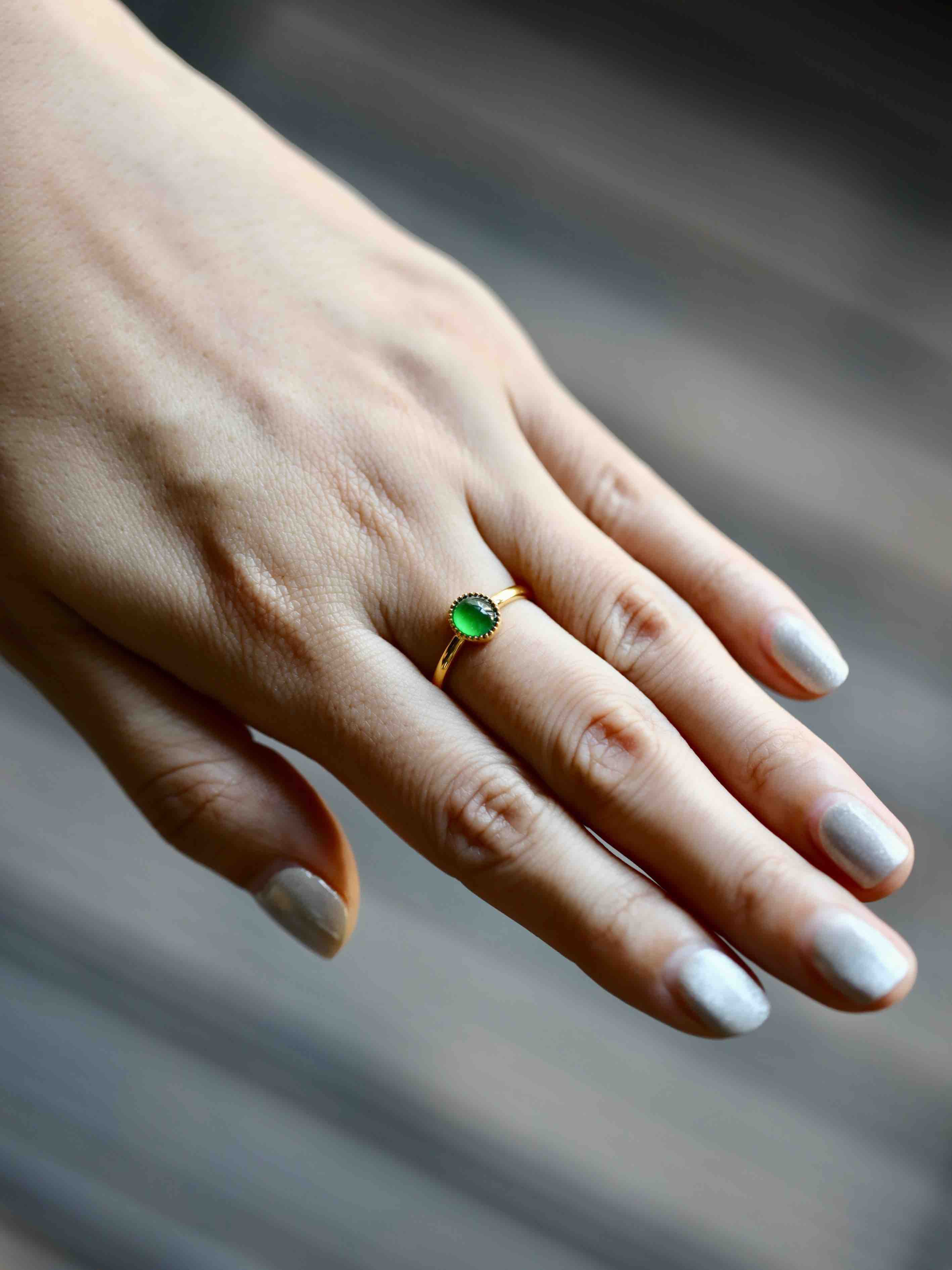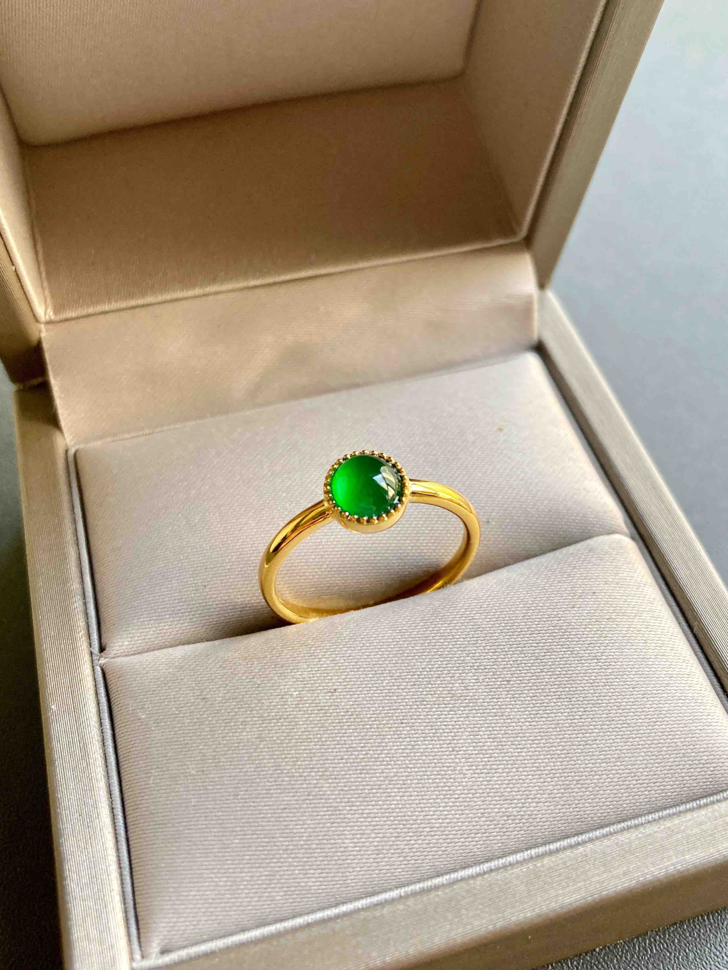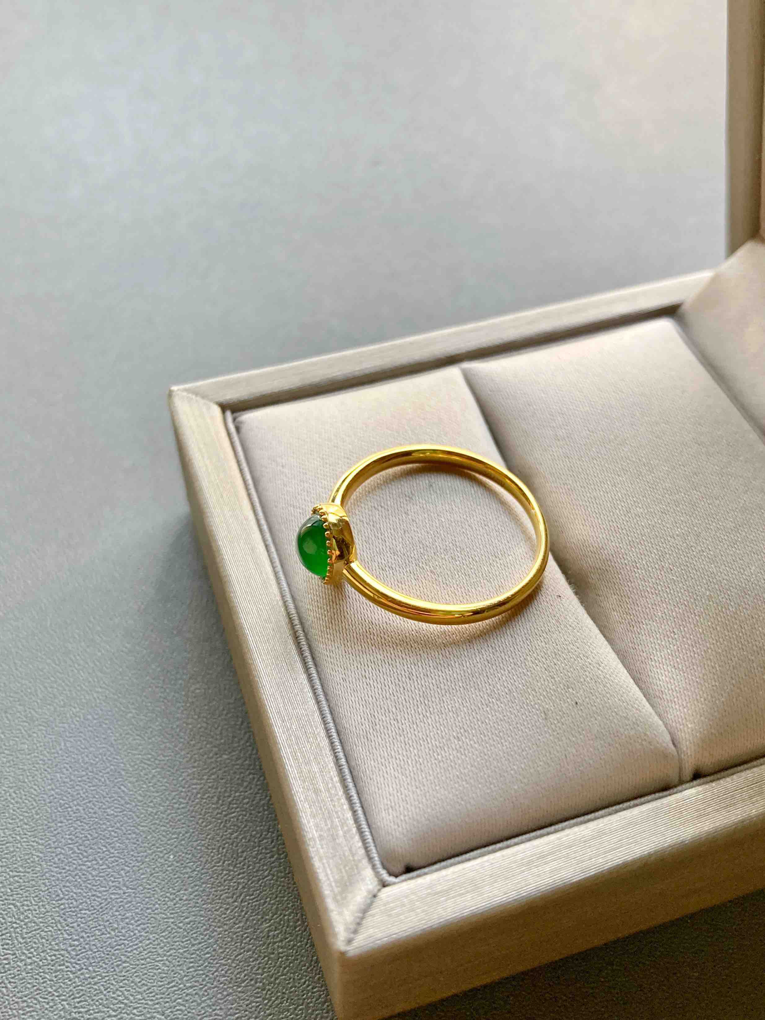高冰种阳绿翡翠蛋面戒指18k黄金镶嵌