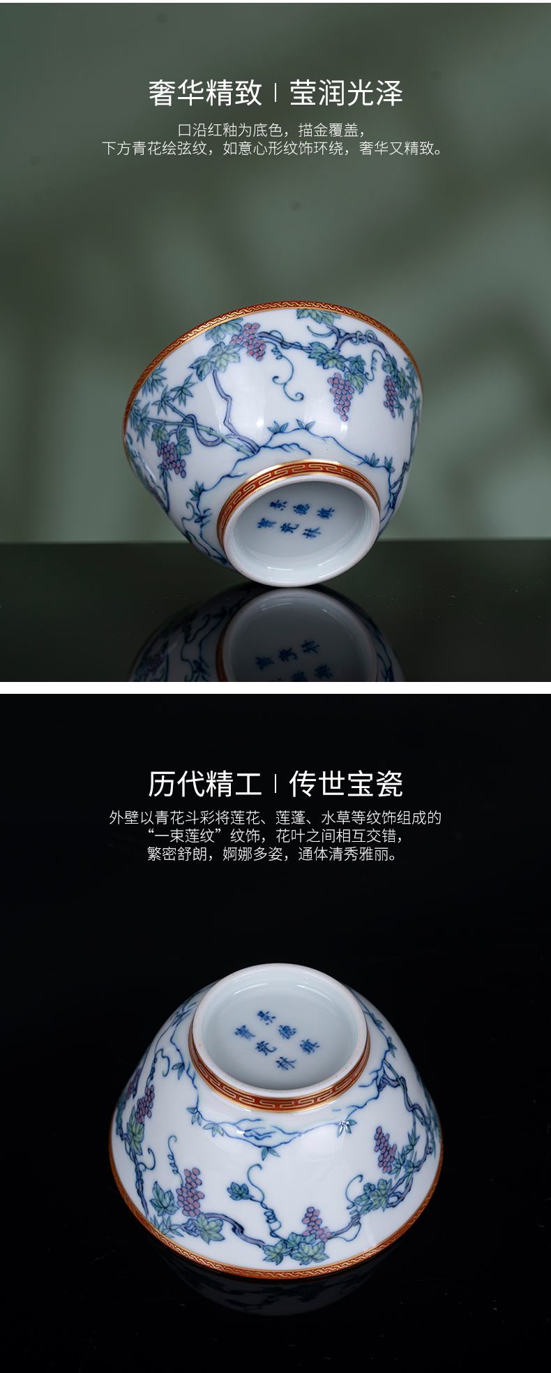 青花斗彩描金葡萄纹杯