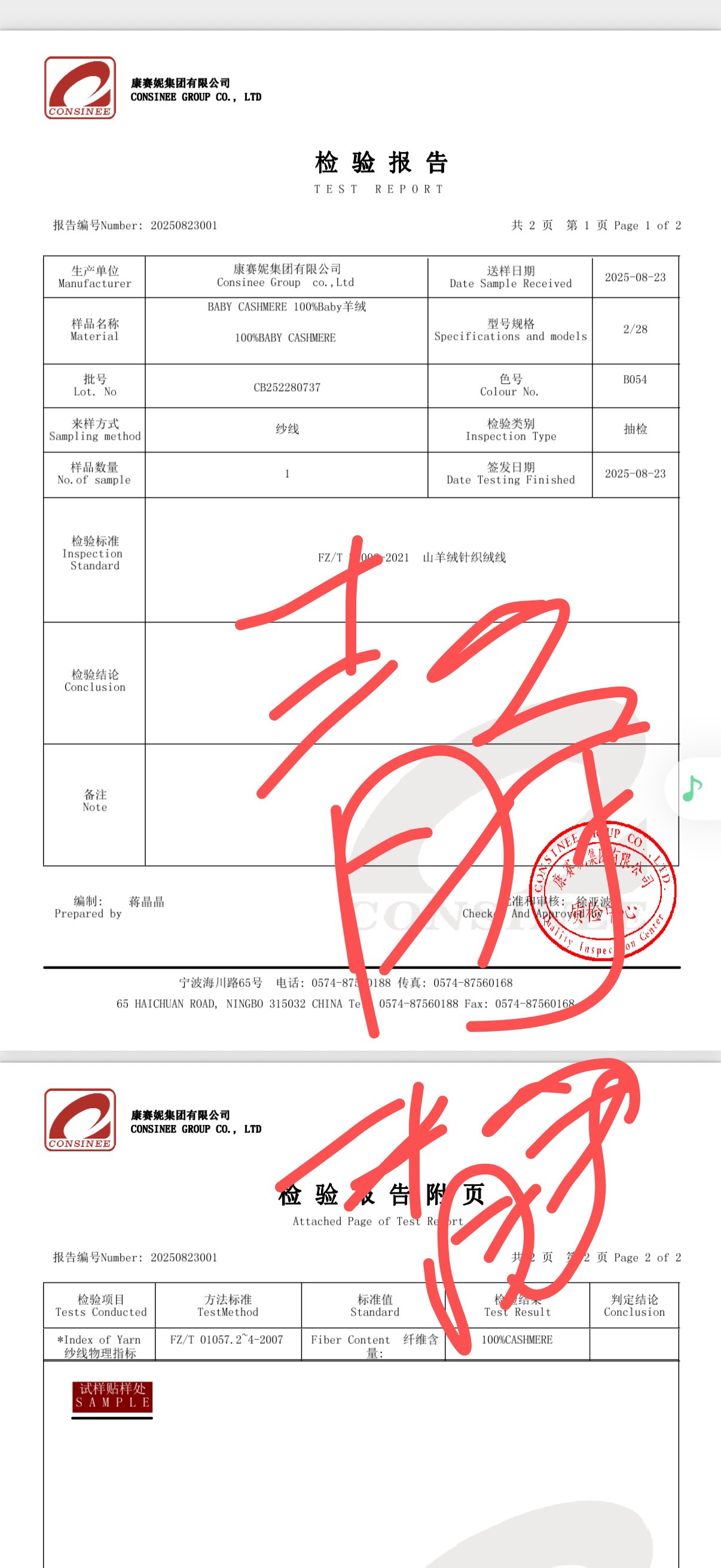 • 细度指标: 康赛妮Baby羊绒的纤维平均细度通常在 13.5微米左右或更细(普通优质羊绒细度在14.5-16微米)。