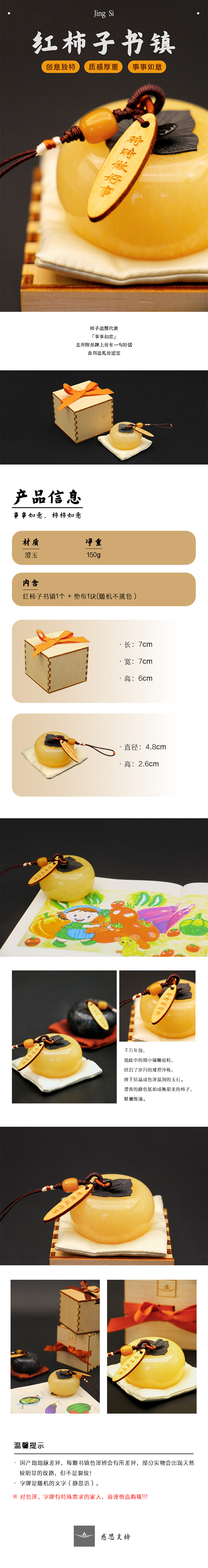 【静思书轩】柿子书镇 部分有天然冰裂纹,介意慎拍