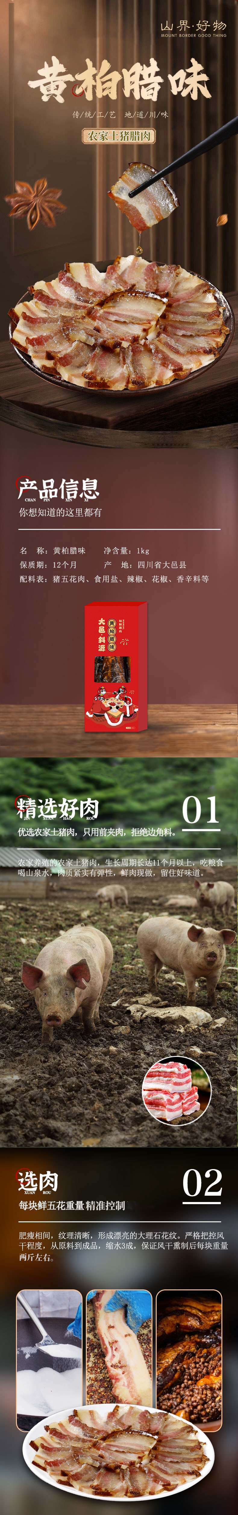 山界黄柏腊味五花腊肉2斤装精品盒装