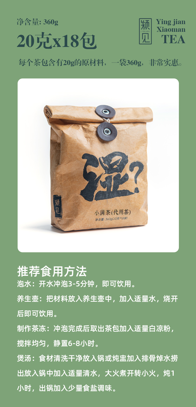 “与辉直播间爆款”颖见 人参霍山石斛茎小满茶 独立包装 方便携带 18包/袋(新旧包装随机发)
