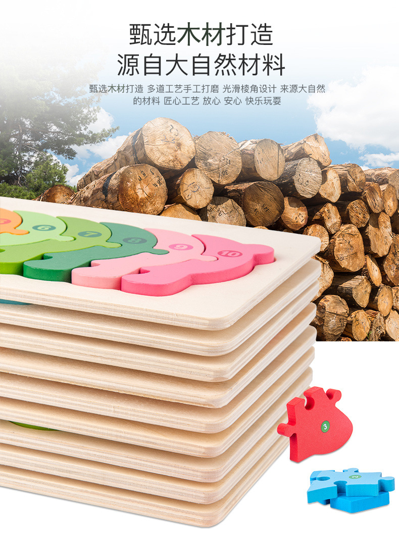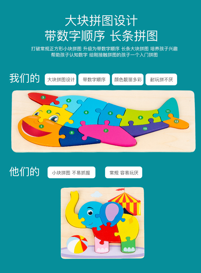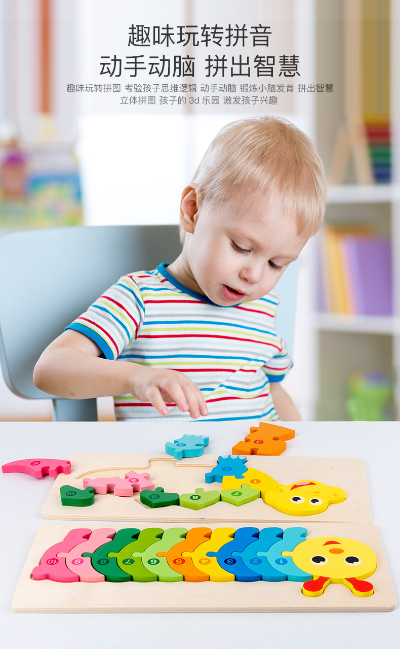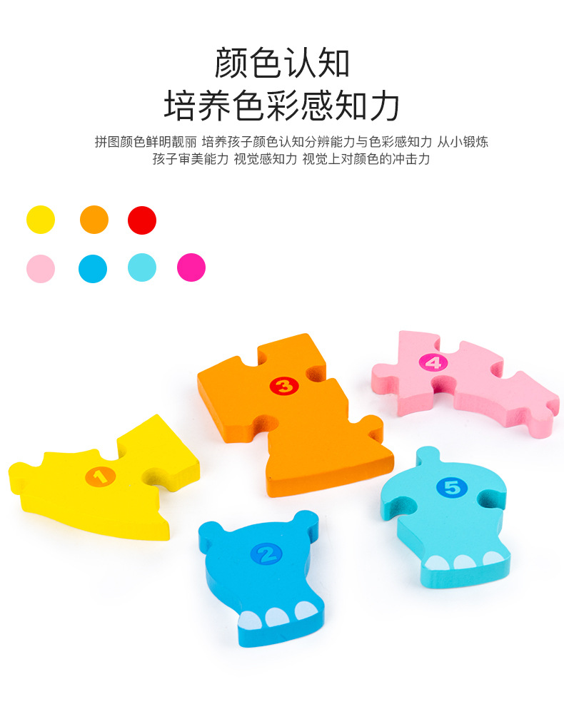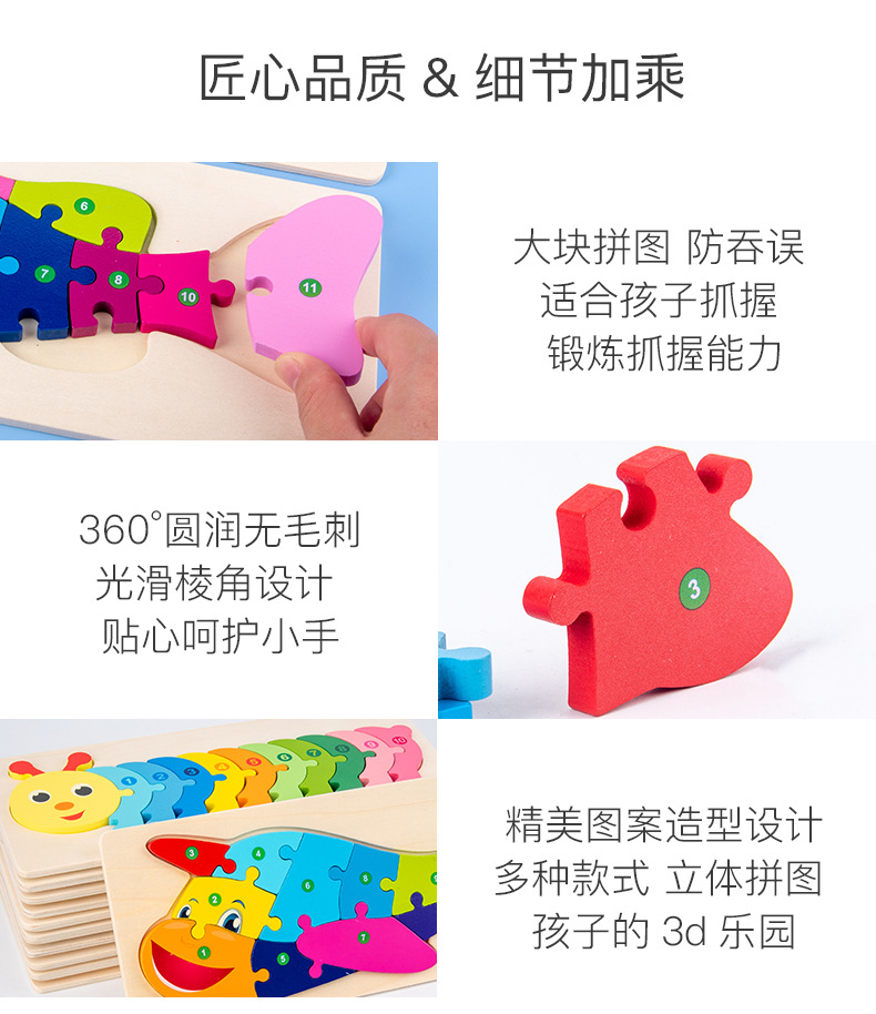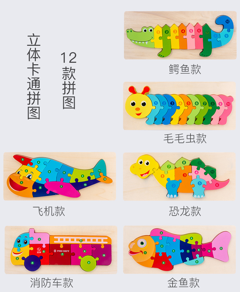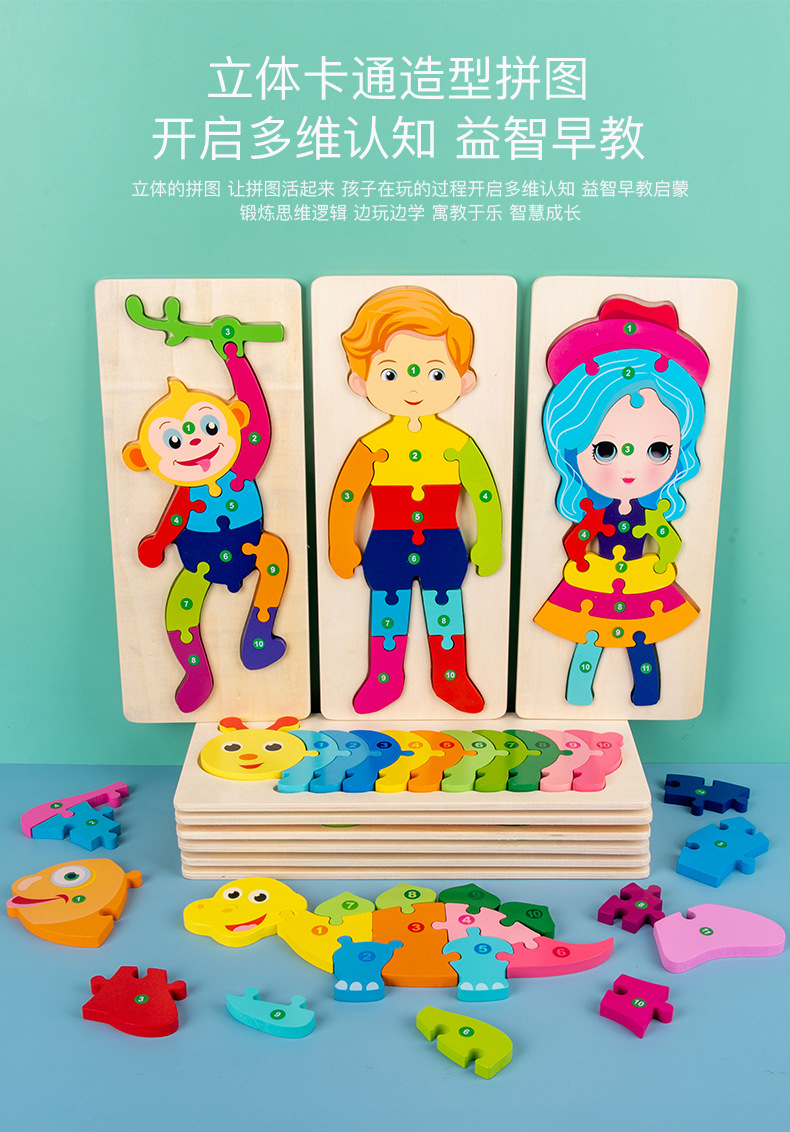 【趣味立体卡通拼图】大号恐龙卡扣3d立体拼图木制玩具幼儿童益智早教木质宝宝积木