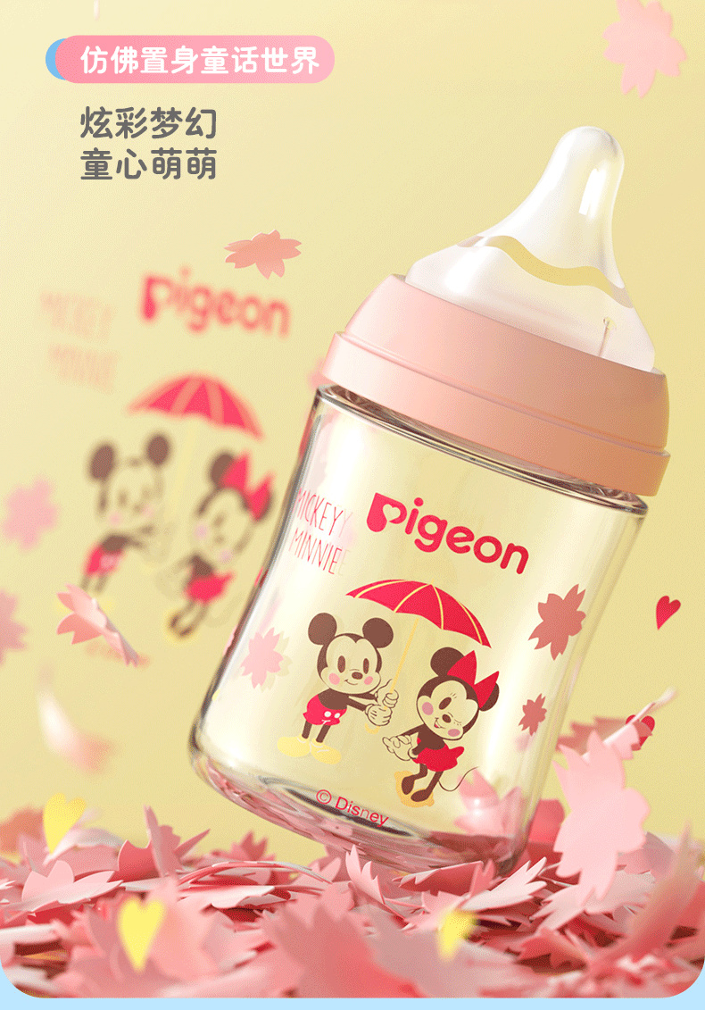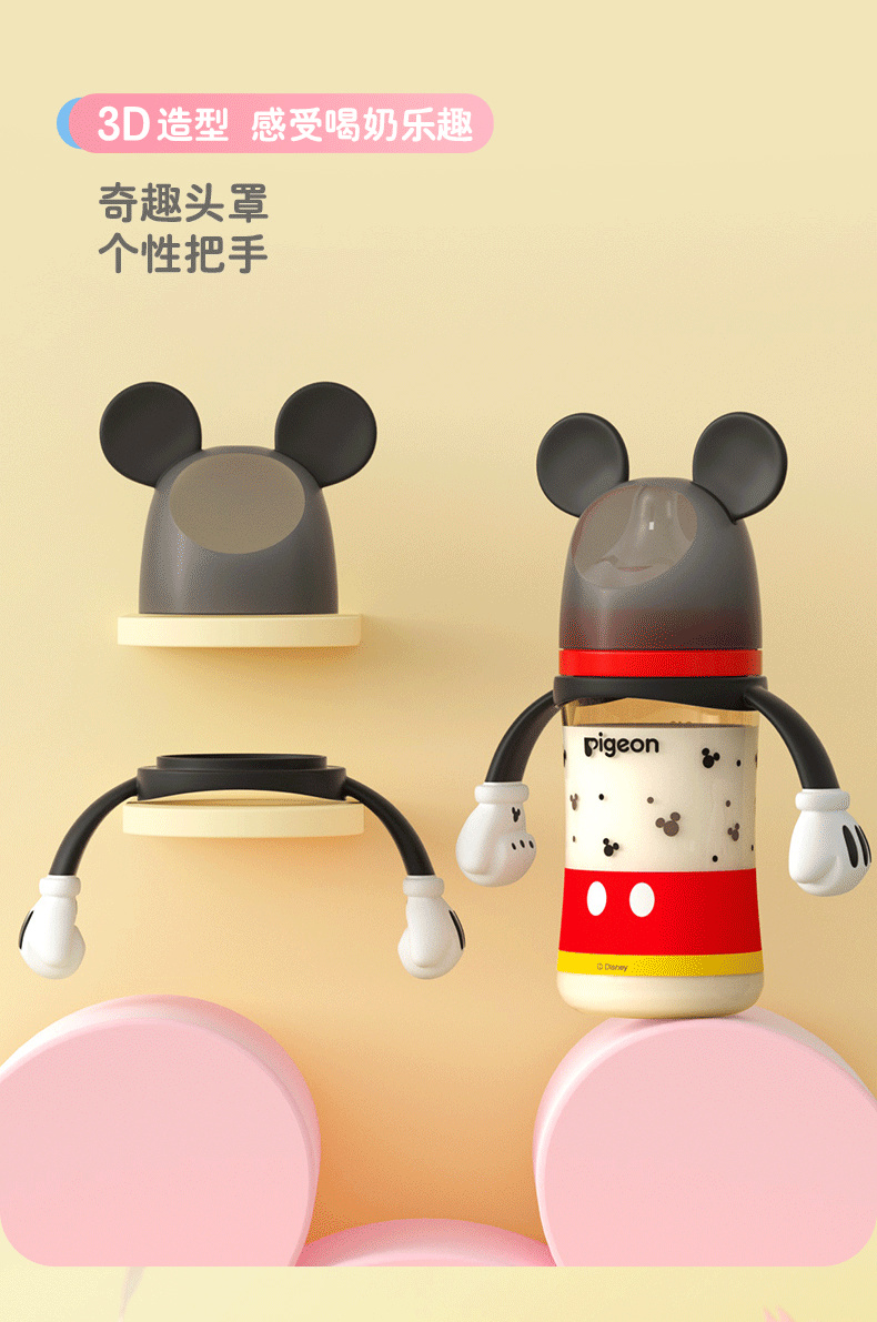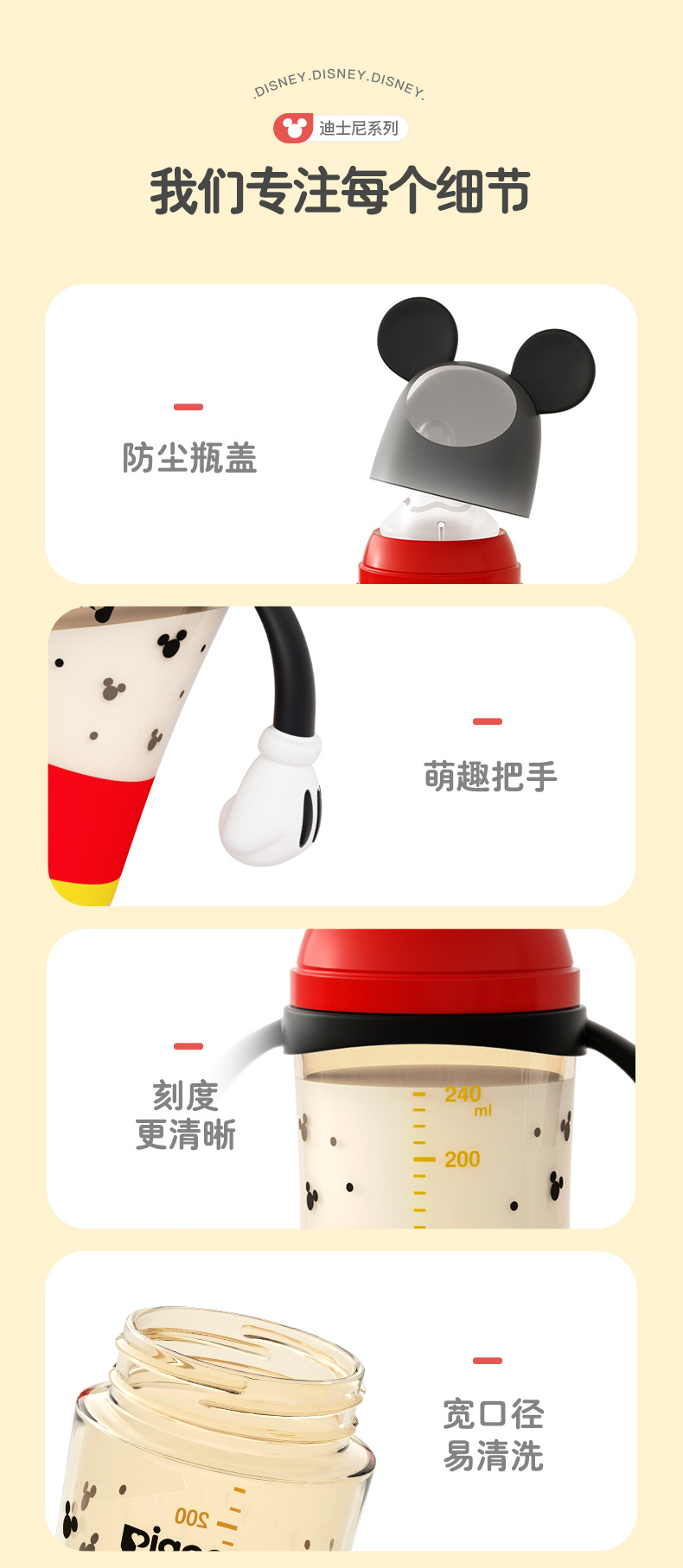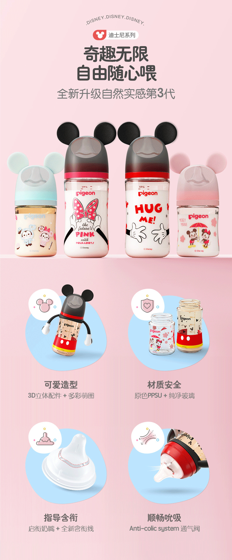 贝亲迪士尼系列自然实感第3代宽口径玻璃彩绘奶瓶PPSU彩绘奶瓶