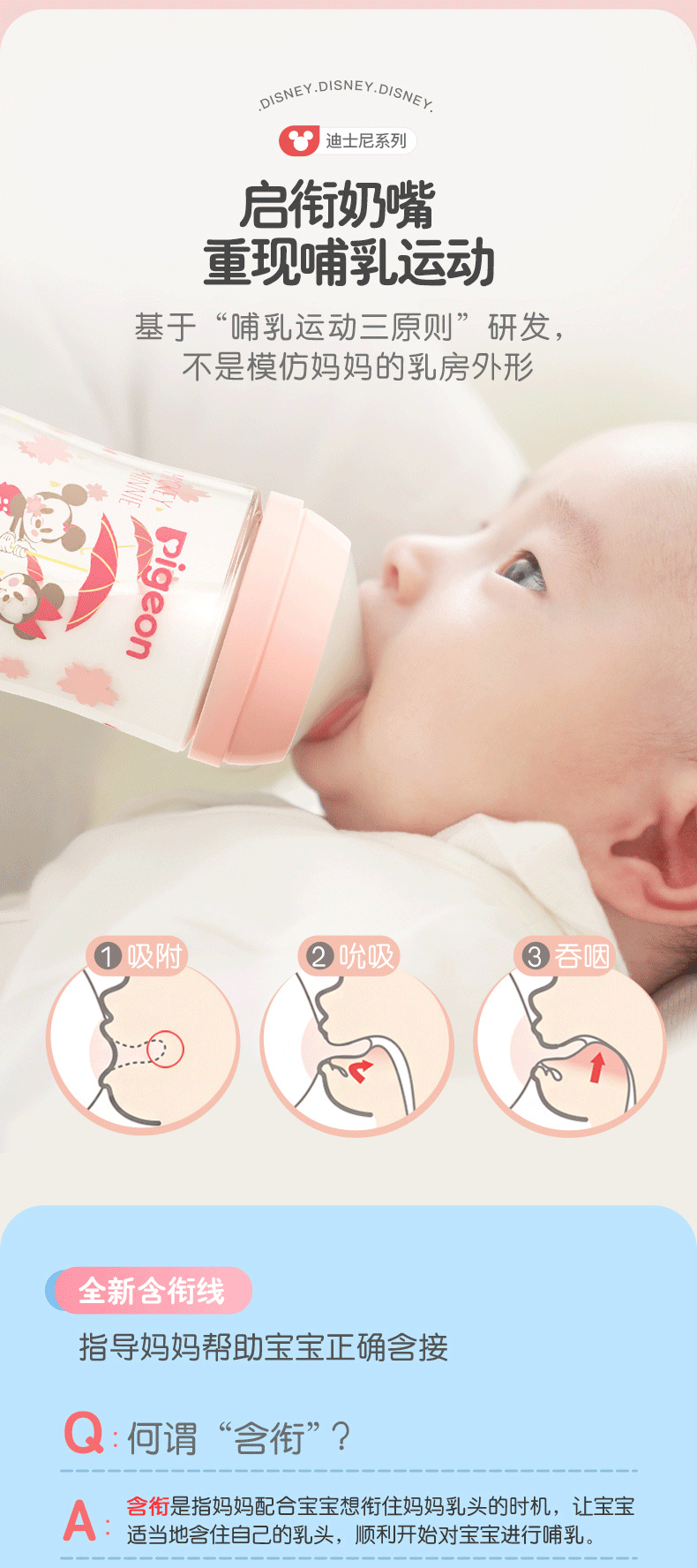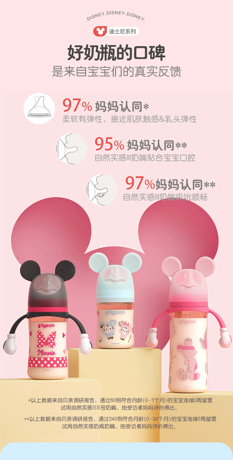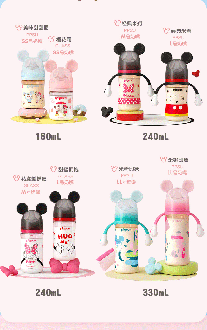 贝亲迪士尼系列自然实感第3代宽口径玻璃彩绘奶瓶PPSU彩绘奶瓶