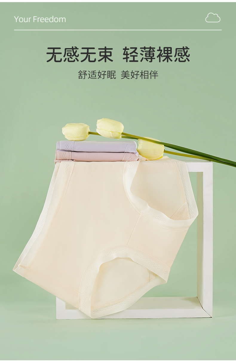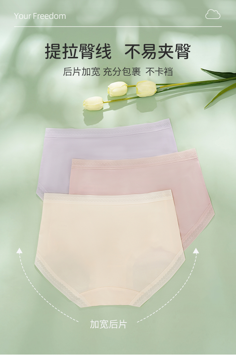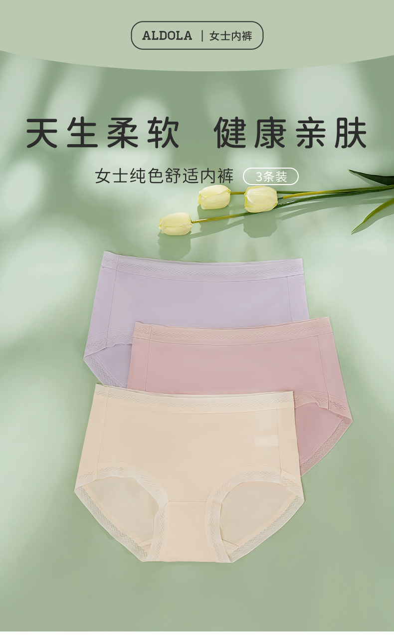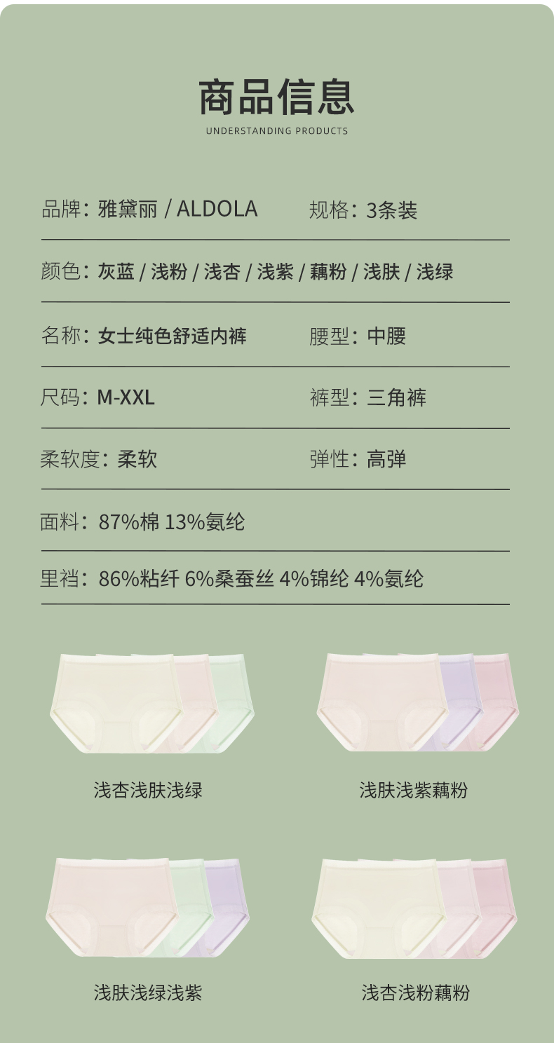 雅黛丽纯色棉质内裤女含桑蚕丝抗菌底裆柔软高弹裸感中腰3条装