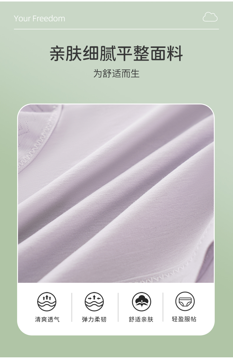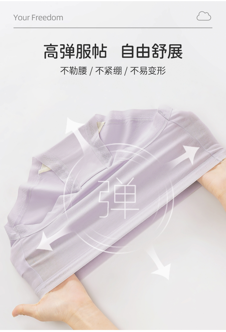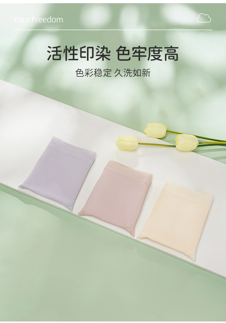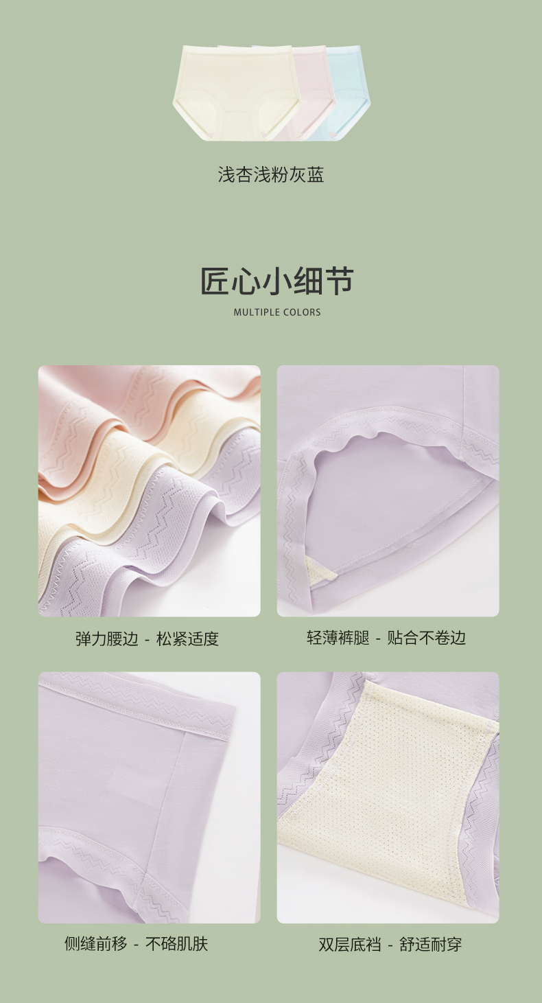 雅黛丽纯色棉质内裤女含桑蚕丝抗菌底裆柔软高弹裸感中腰3条装