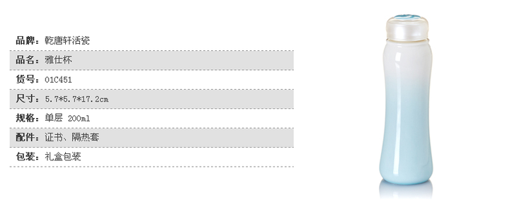 乾唐轩活瓷 雅仕随身杯单层200ml 女士创意陶瓷小口水杯子便