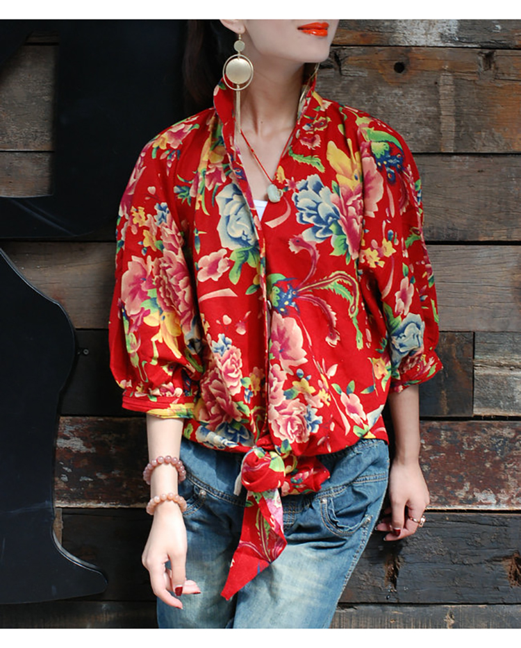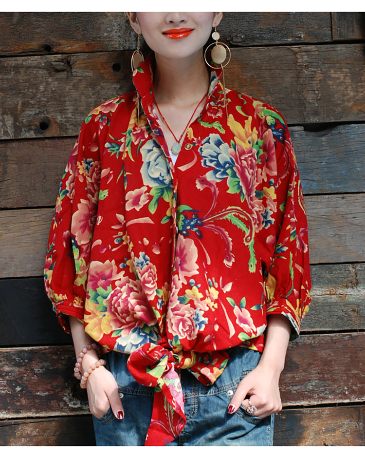 裁缝学苑AQ159新款春蝙蝠袖衬衣女装民族风打结衬衫上衣服装打板
