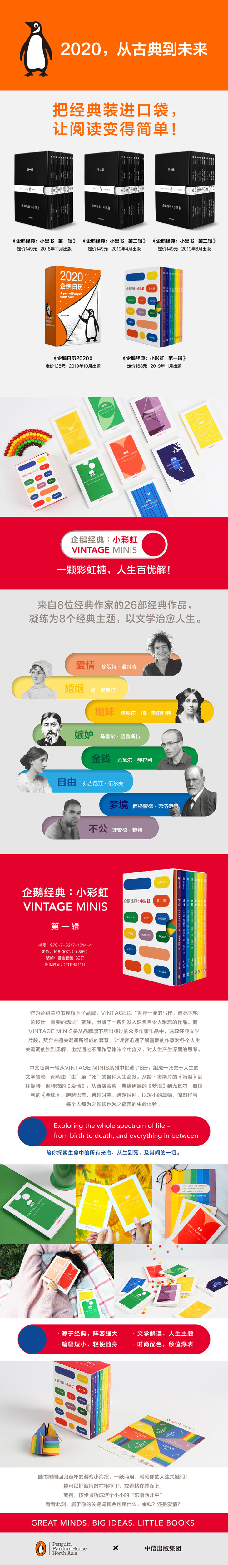 《企鹅经典:小彩虹》系列甄选企鹅经典系列作品,带来关于人生问题的智慧文学答卷。第一辑共8册,每册用一个关键词命名,摘选作家一本或多本作品的精彩片段,阐释由“生”至“死”的各种人生命题。