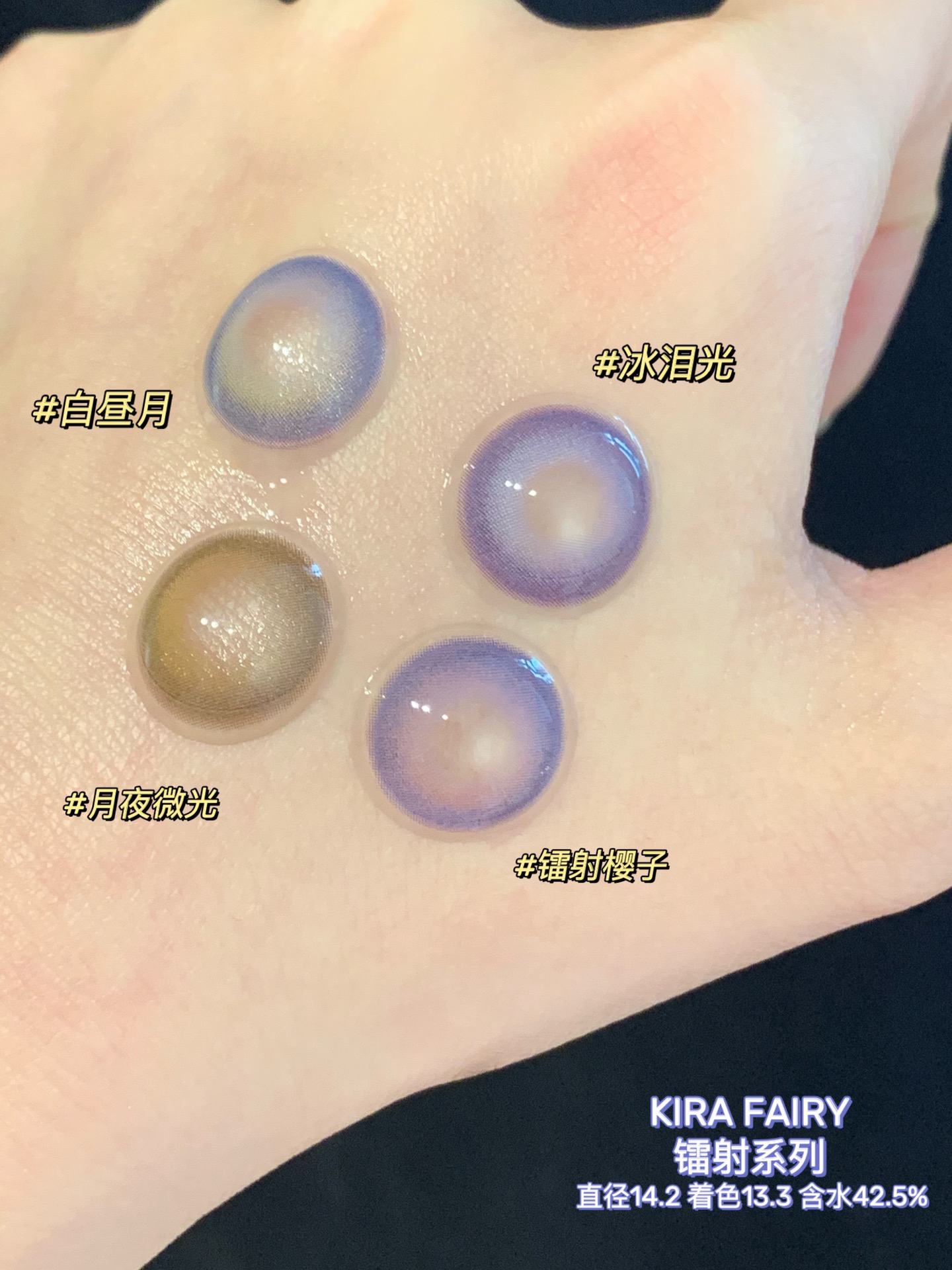 Kira Fairy | 月夜微光棕/冰泪光蓝/镭射樱子紫/白昼月(蓝灰) | 年抛 | 14.2mm | 自然轻混血