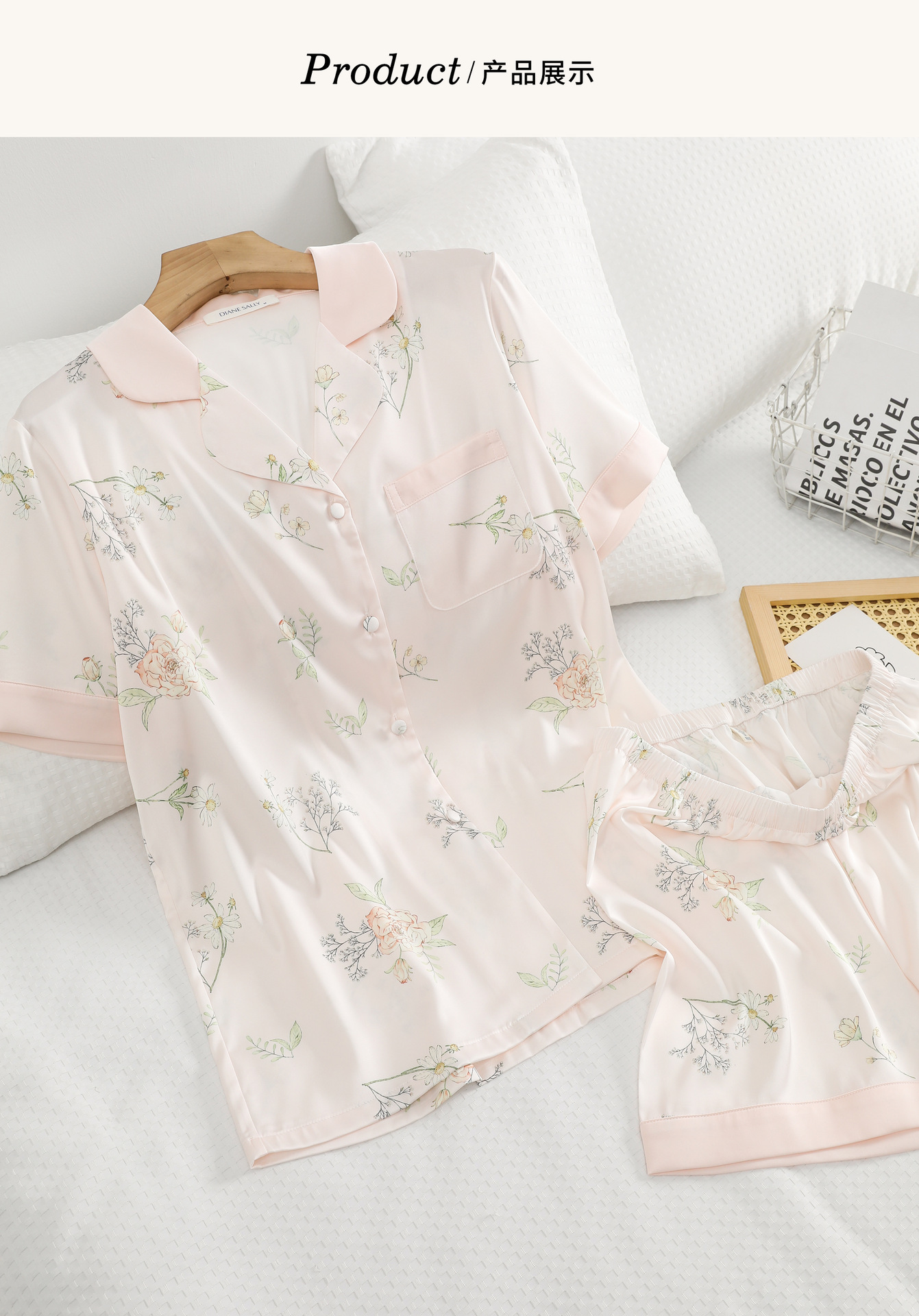 「自」洛诗琳维密定制春夏薄款印花冰丝短袖短裤两件套时尚休闲可外穿家居服套装女99800