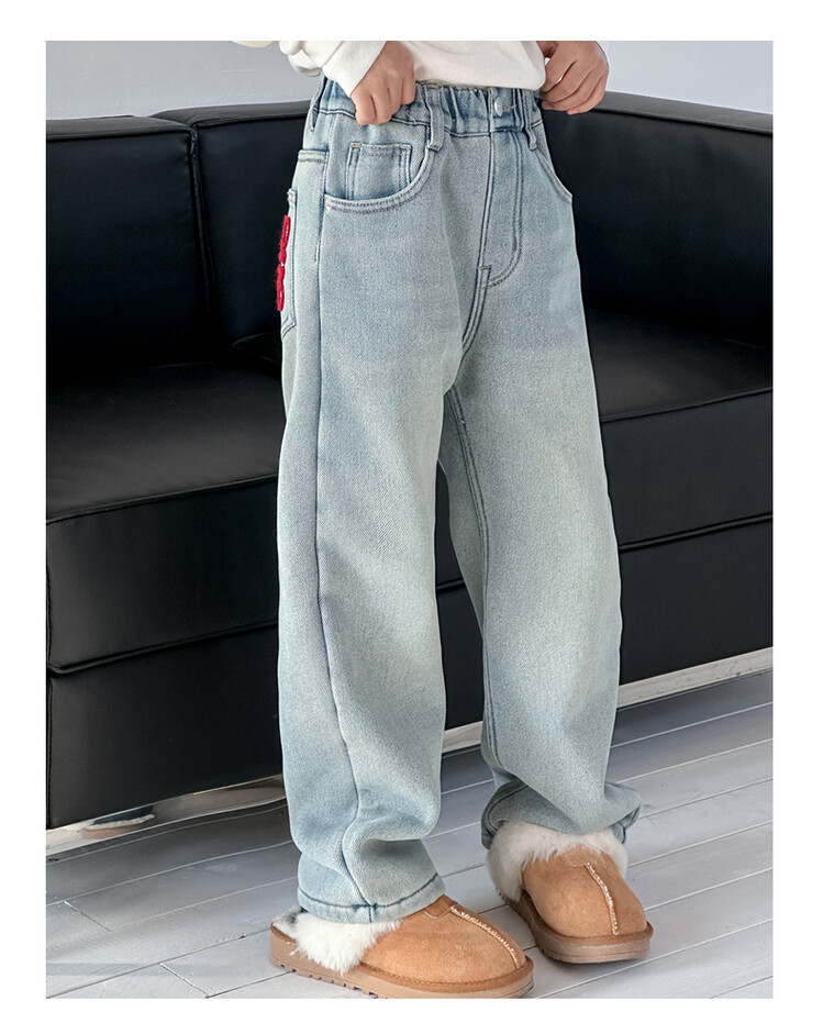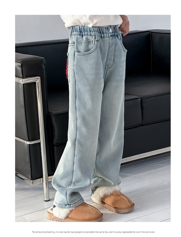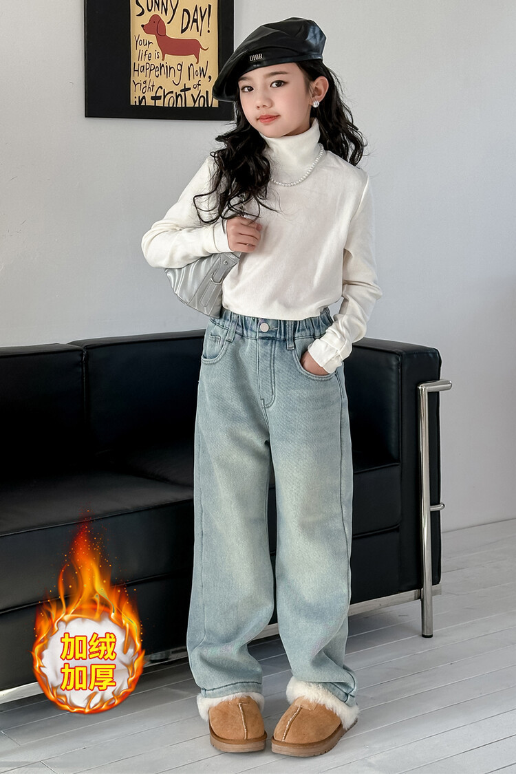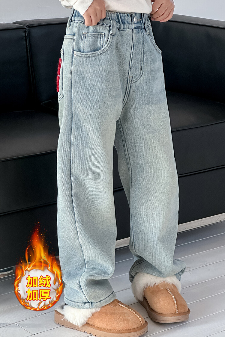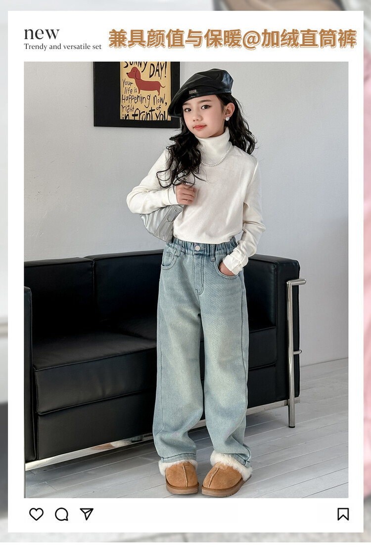 女童一体加绒加厚牛仔老爹裤,2024秋冬龙年新款牛仔裤子潮,无论是日常休闲还是户外运动,这款牛仔裤都是您的理想选择