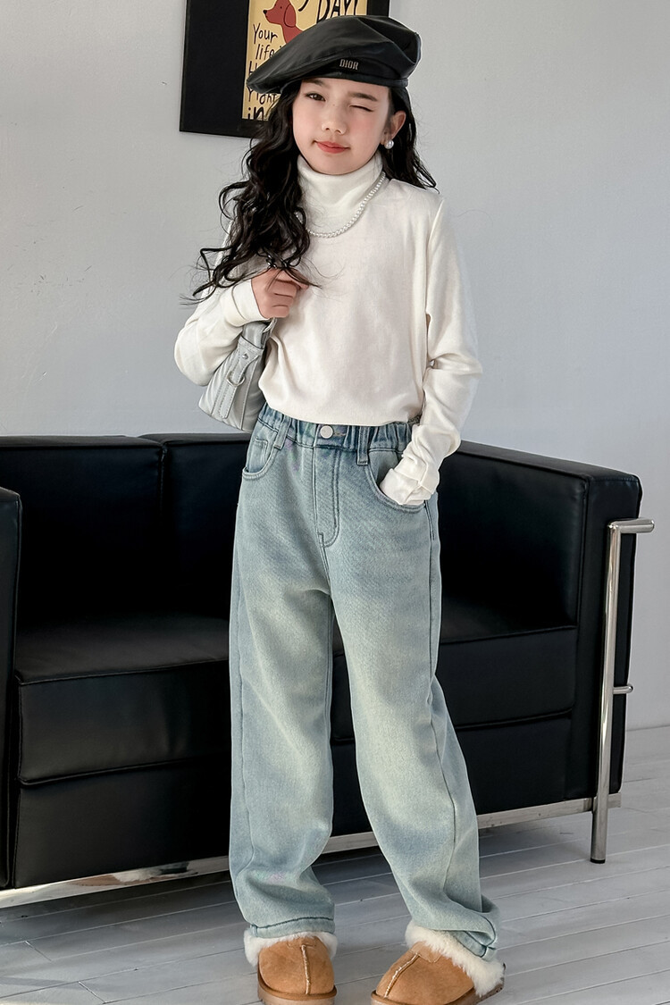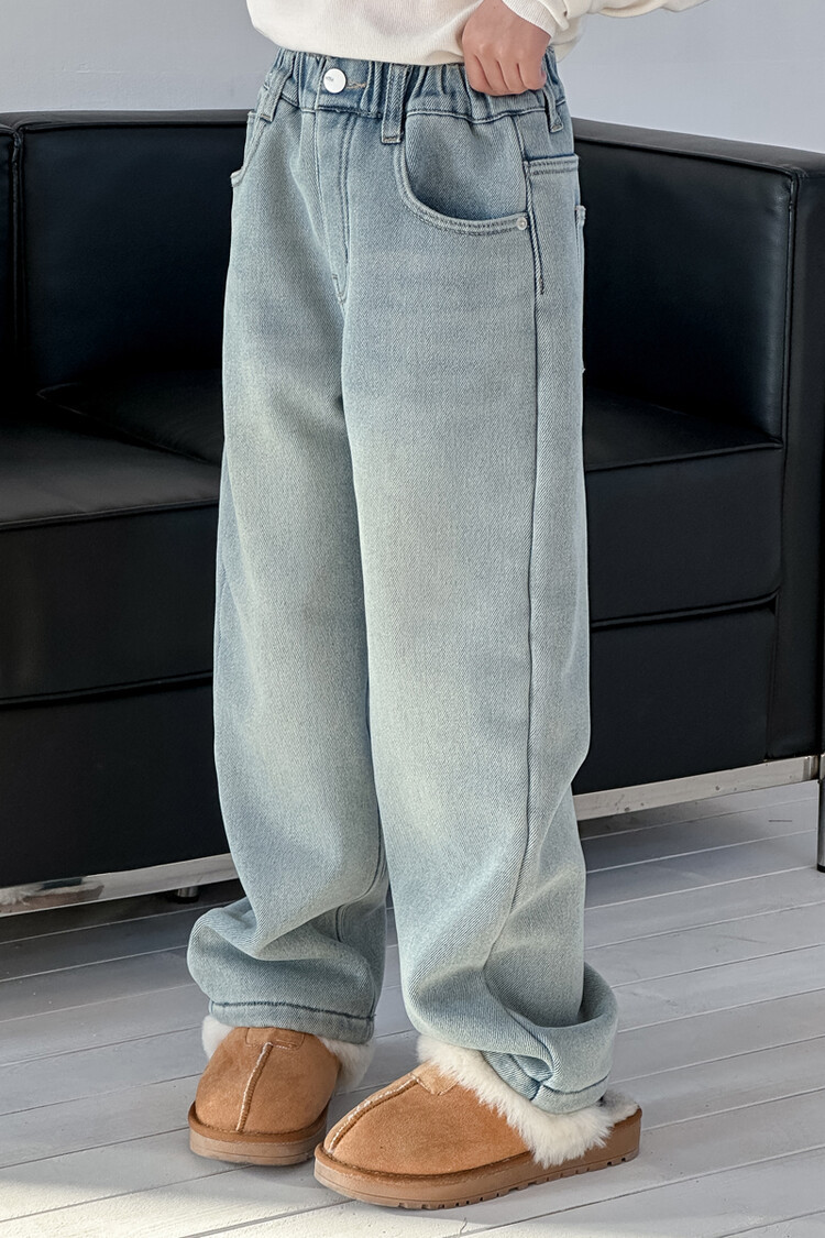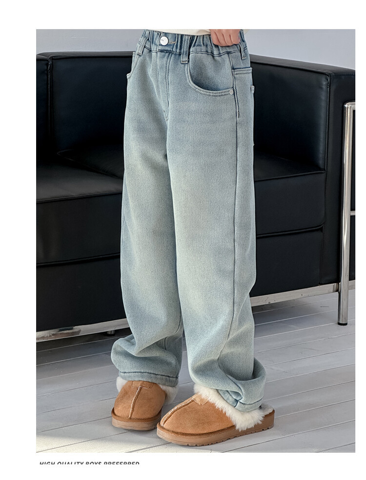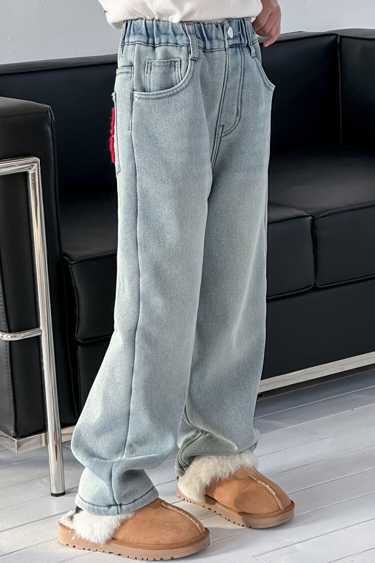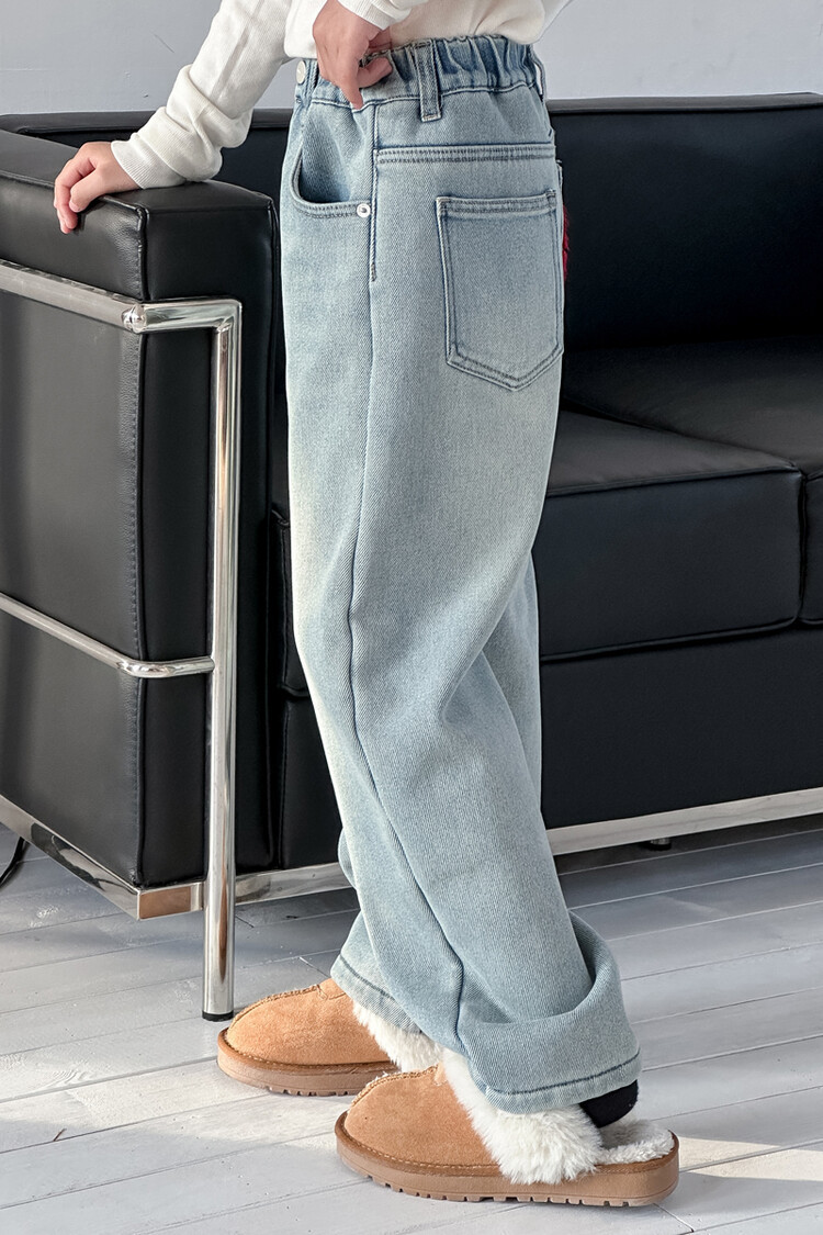 女童一体加绒加厚牛仔老爹裤,2024秋冬龙年新款牛仔裤子潮,无论是日常休闲还是户外运动,这款牛仔裤都是您的理想选择