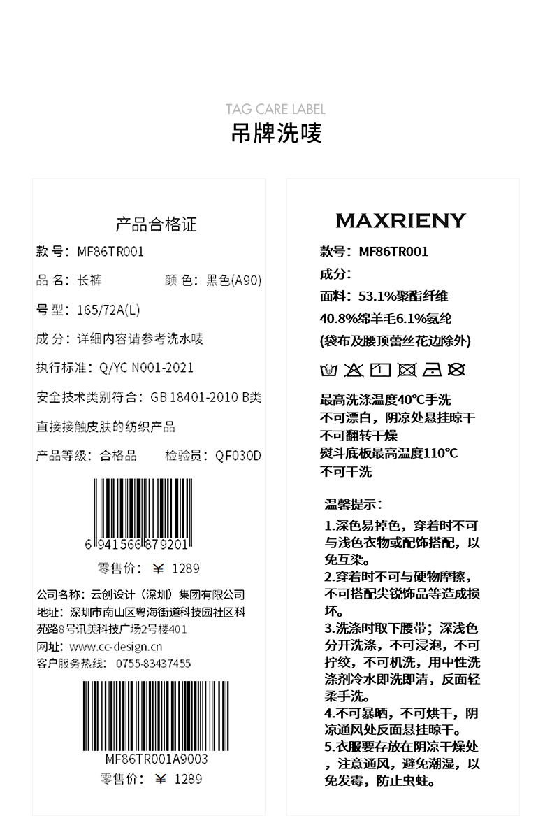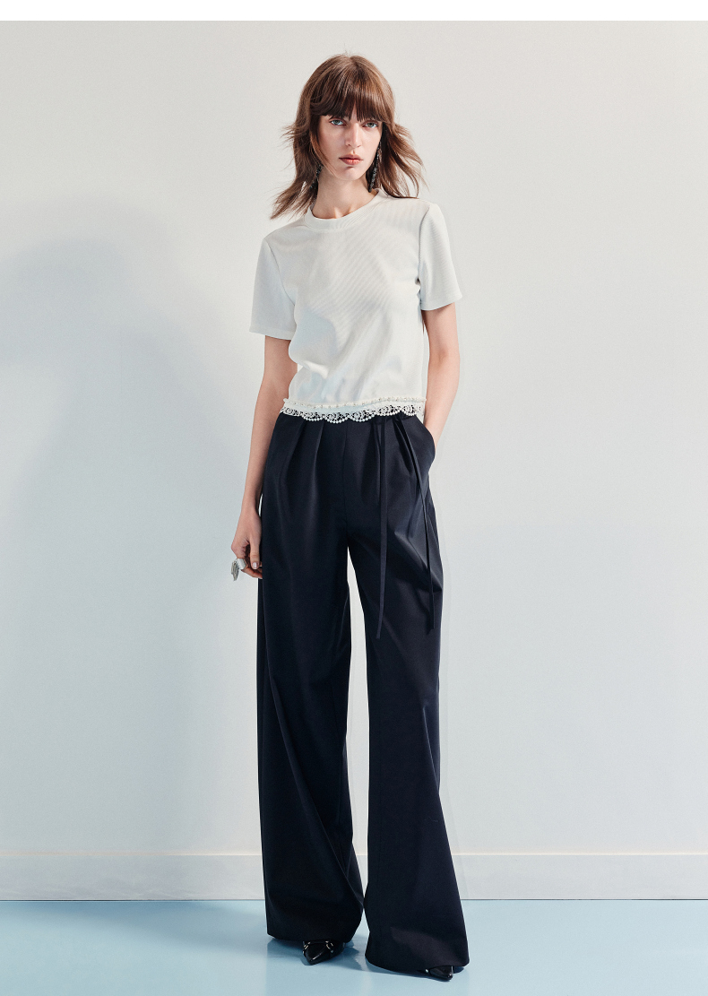 【商场同款】MAXRIENY2025春夏精工打褶休闲阔腿裤(货号:MF86TR001)