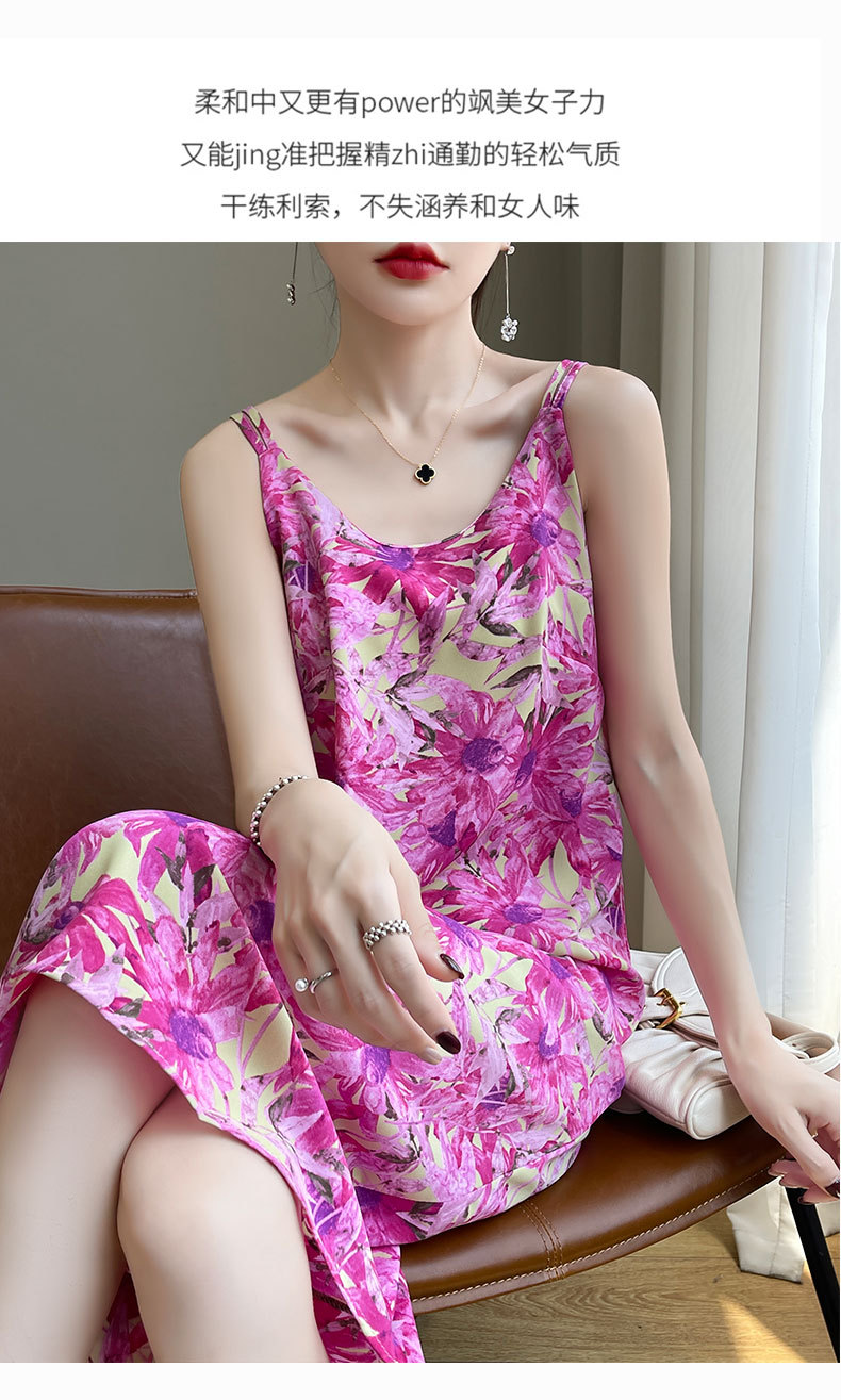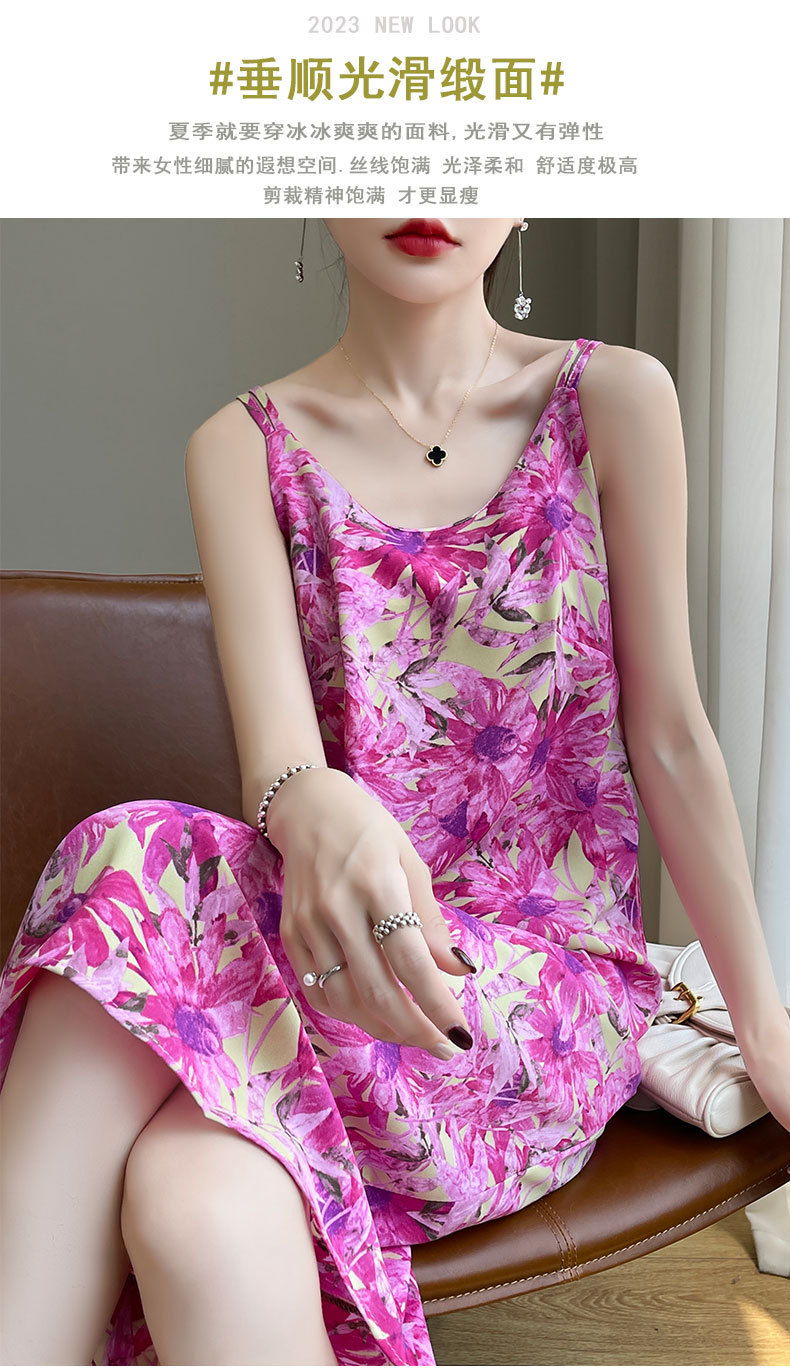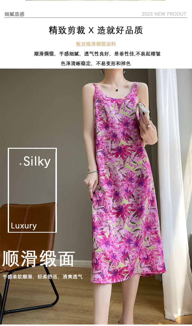 QHJY-JYA02374新款缎面冰丝吊带连衣裙 夏季法式套装复古气质碎花吊带裙子女装