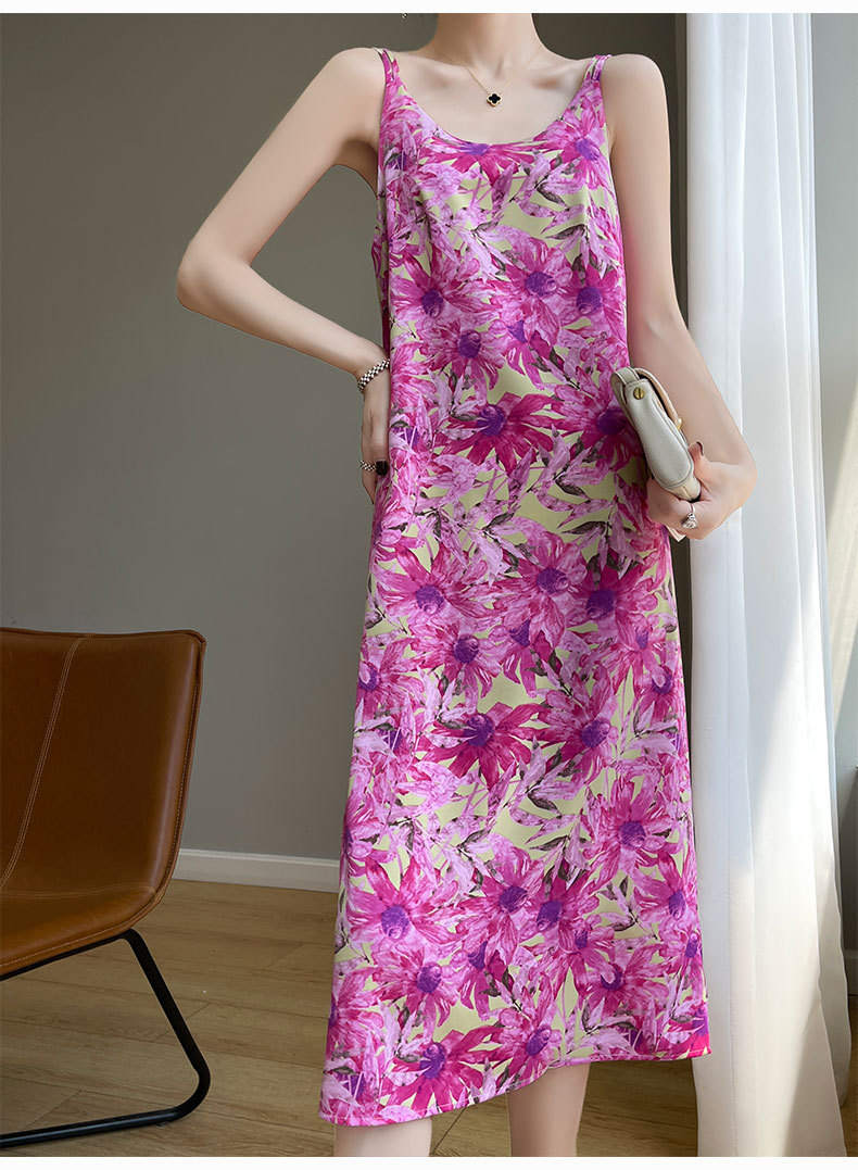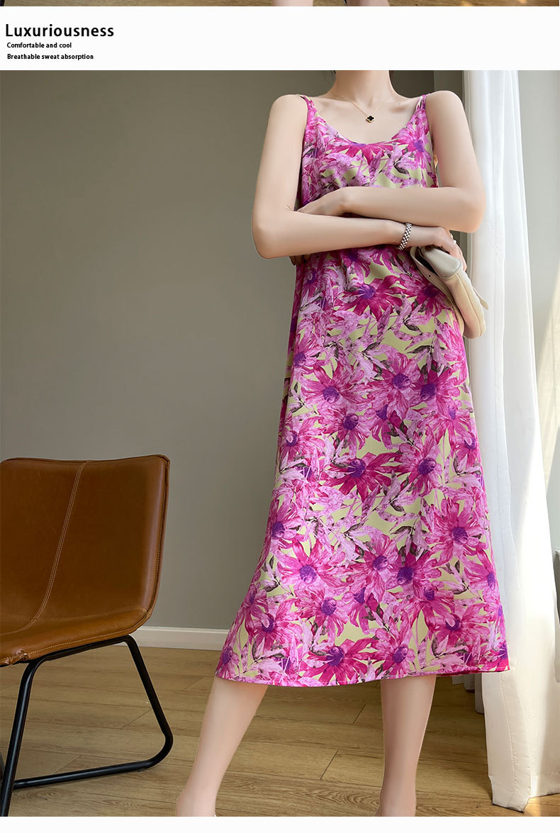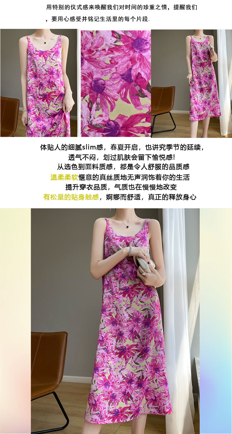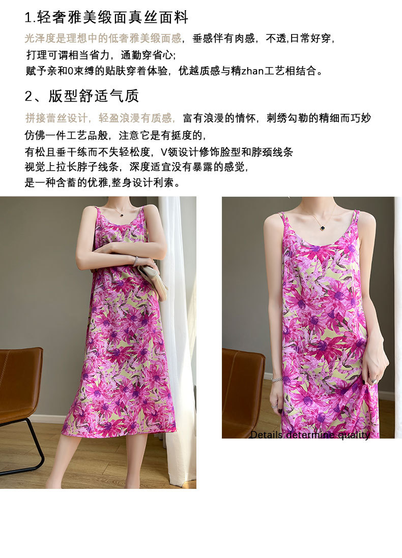 QHJY-JYA02374新款缎面冰丝吊带连衣裙 夏季法式套装复古气质碎花吊带裙子女装