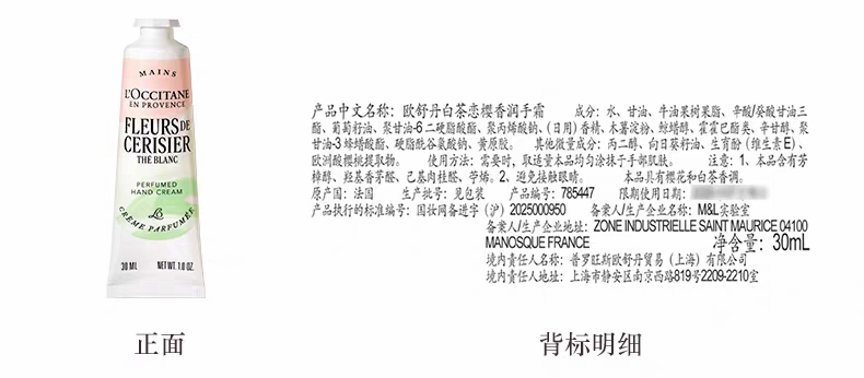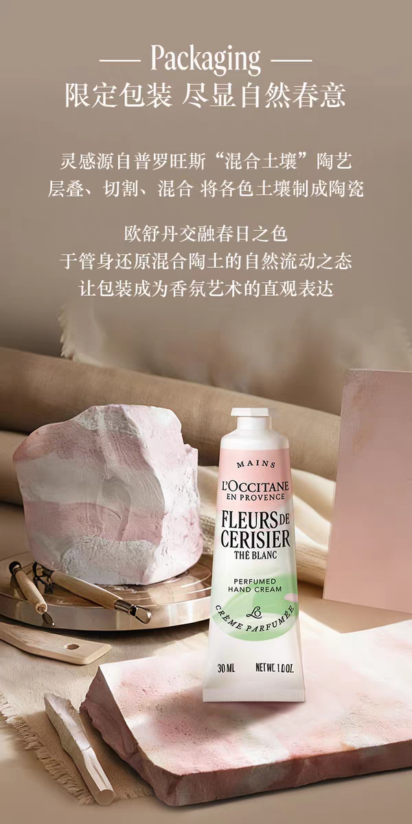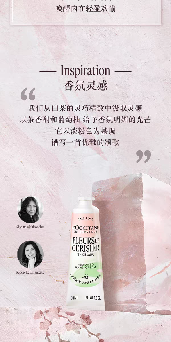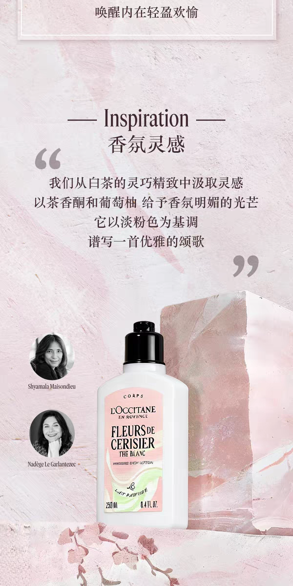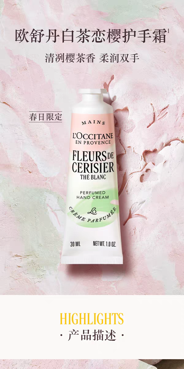 【新品上市】欧舒丹白茶恋樱香沐浴啫喱250ml+润肤乳250ml+护手霜30ml