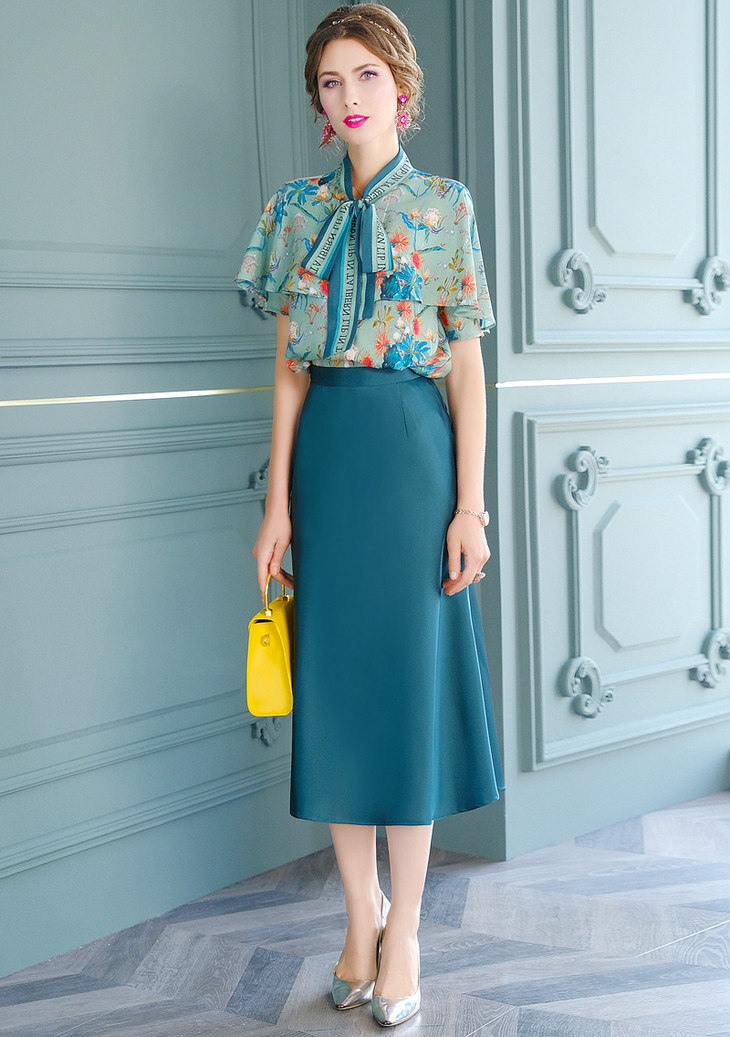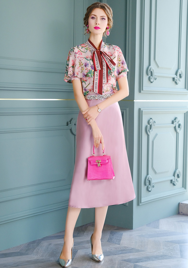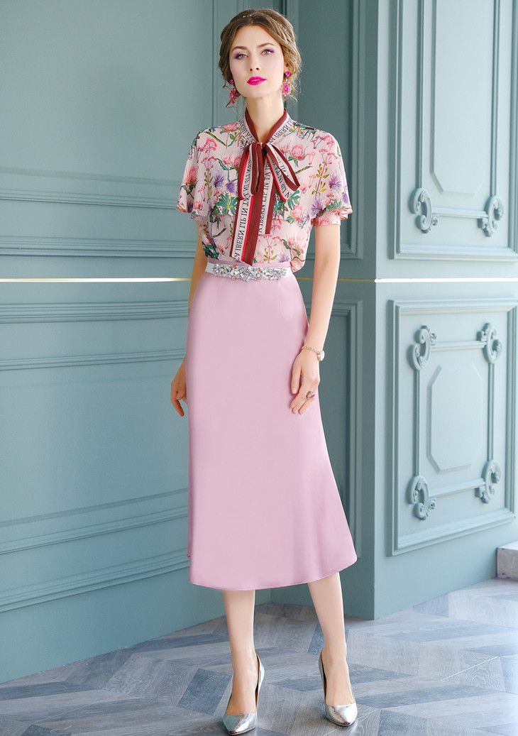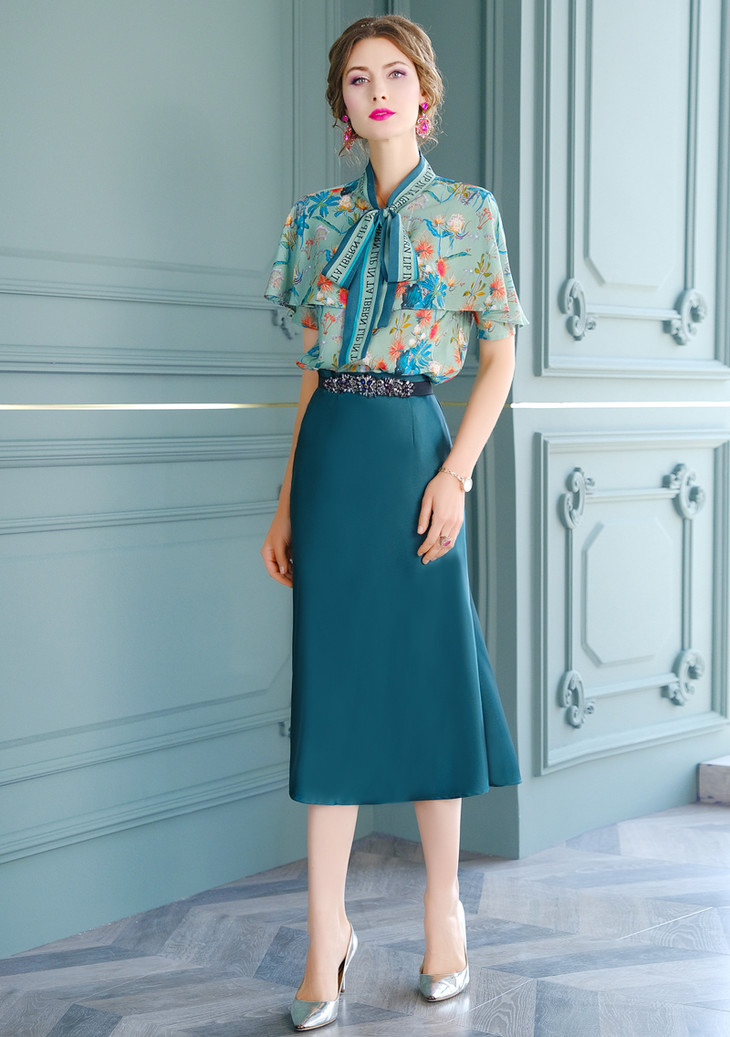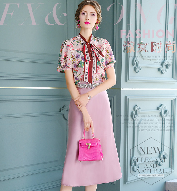 FMY-F20XT30889夏季洋气减龄印花雪纺衫上衣半身裙两件套