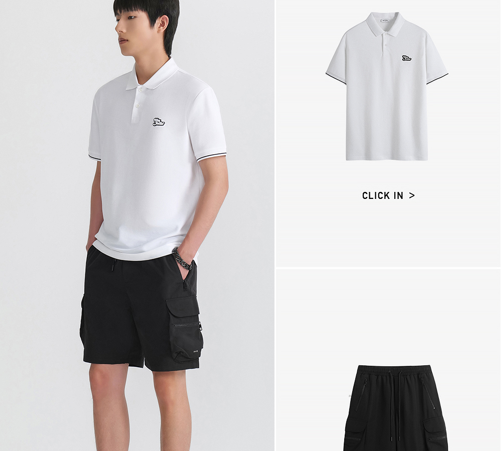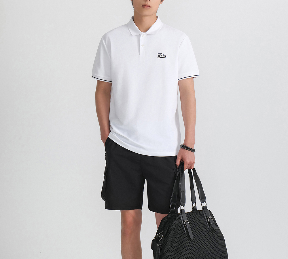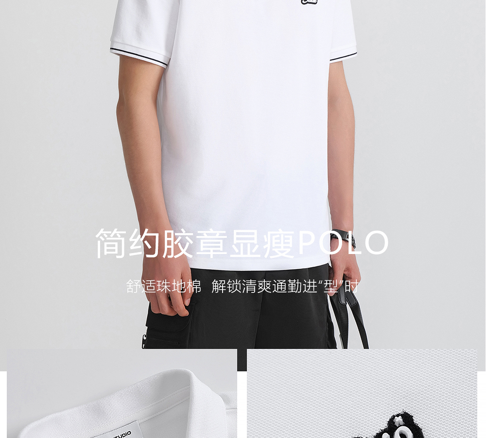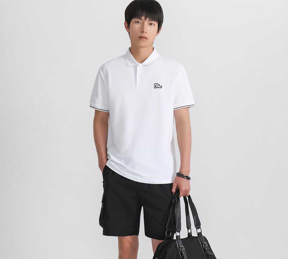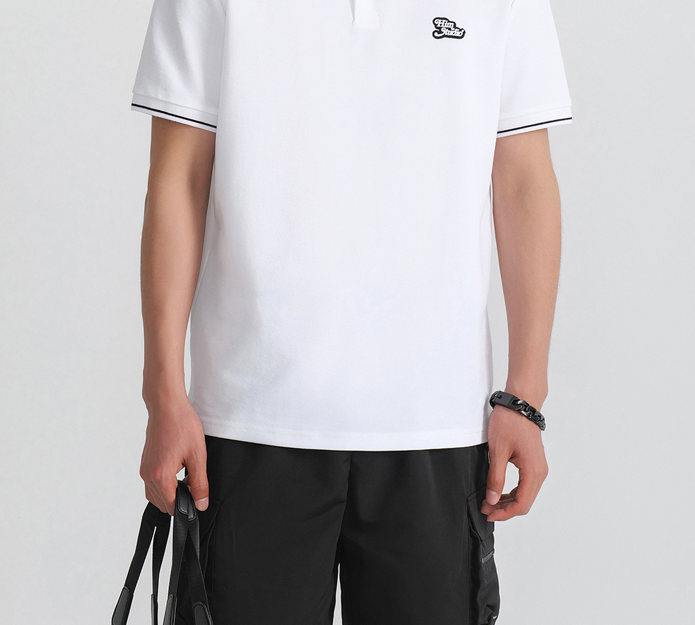 HIM漢崇 珠地棉Polo衫滴胶章图案舒适透气短袖反领T恤男 2026夏季