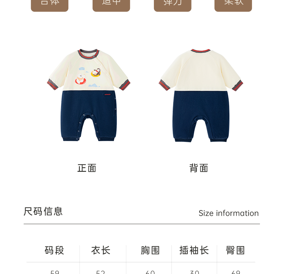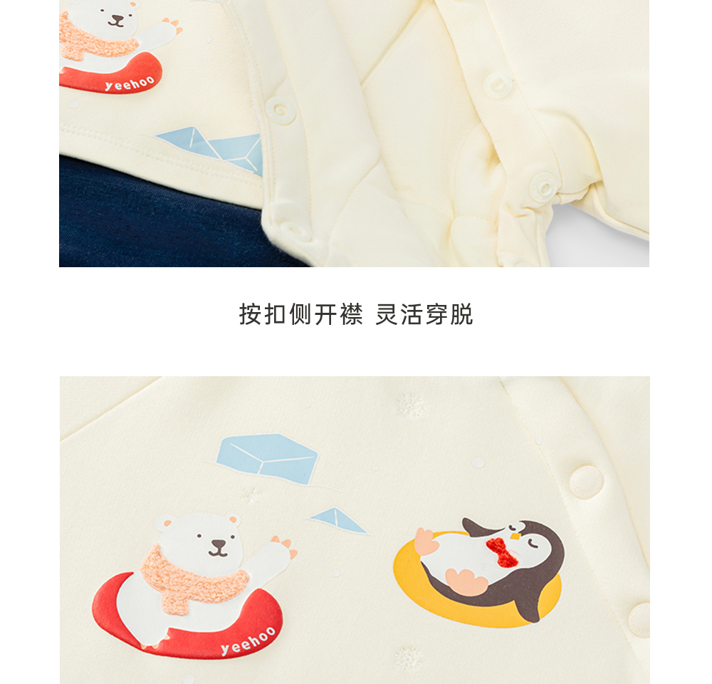 【商场同款】英氏婴儿衣服男宝秋夹棉哈衣月亮裆连体衣