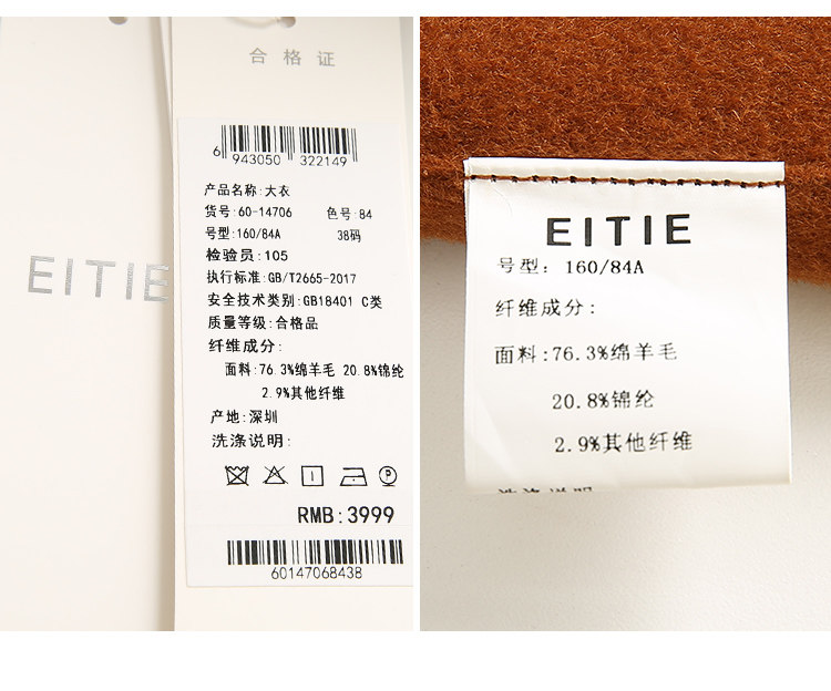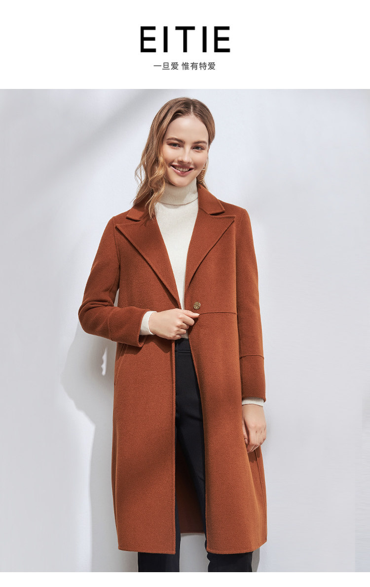 EITIE爱特爱冬季新款气质简约大气直筒显瘦双面呢羊毛大衣女6014706