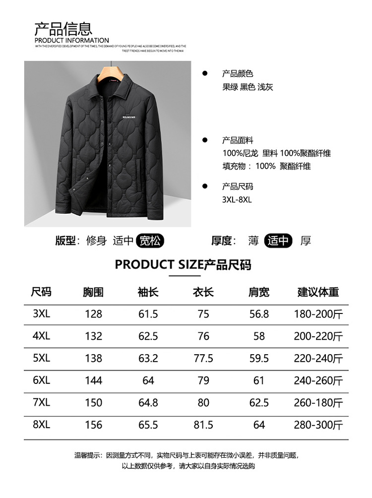 【DPX】大依优型大码男装冬季加棉夹克棉服商务时尚休闲轻奢翻领棉衣300斤