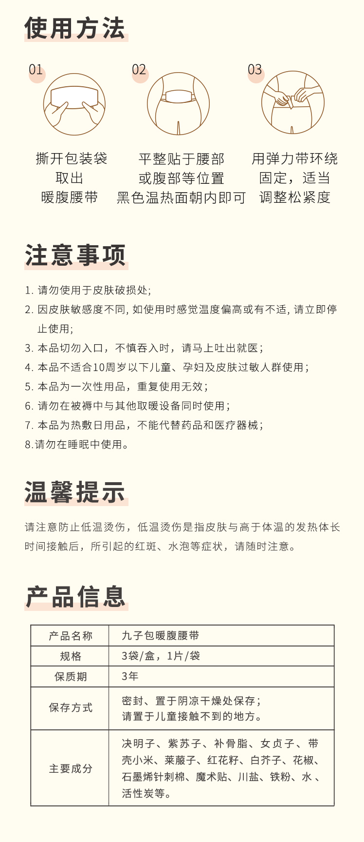 正安国货·九子包暖腹腰带 360°环腰可拉伸弹力带 8小时发热养护腰腹胃 3袋/盒