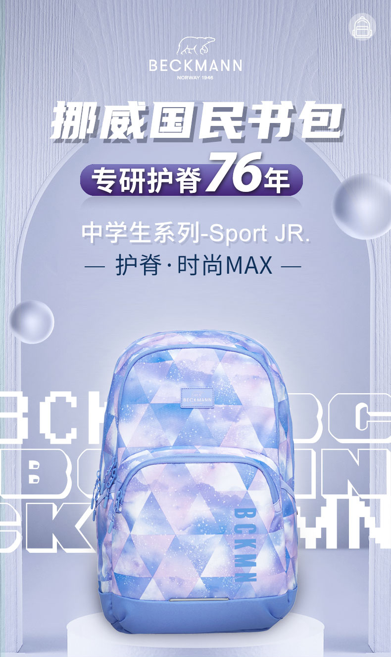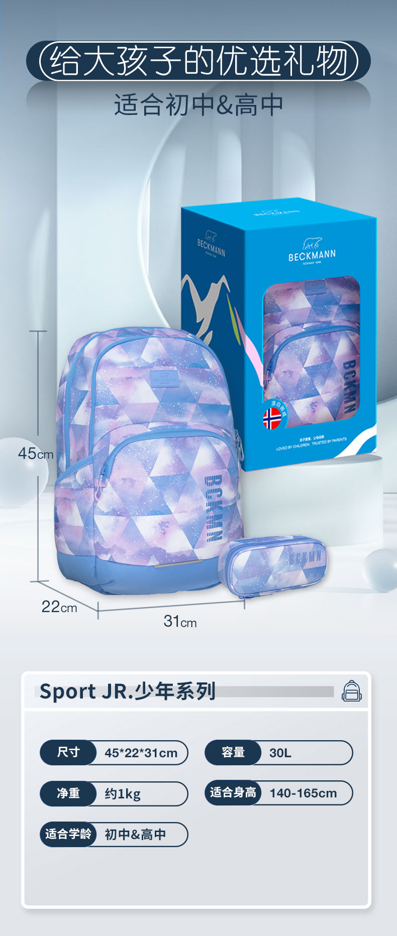 【30L 适合初高中 赠价值159元Beckmann笔袋】贝克曼护脊书包 Sport jr.少年30系列中学生