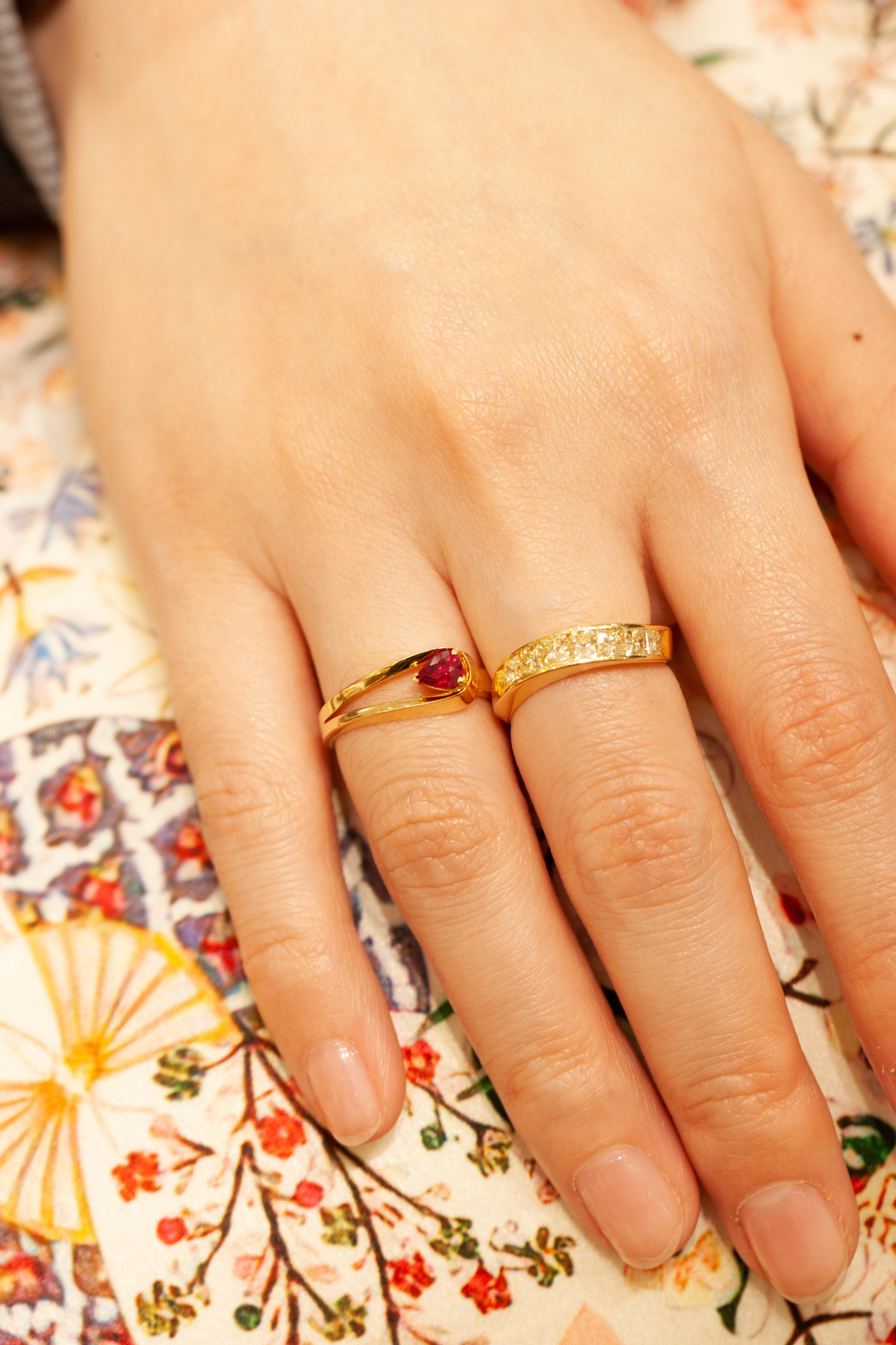 材质:k黄 / k白、鸽血红红宝石(0.35ct)