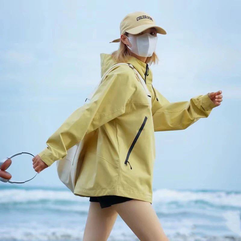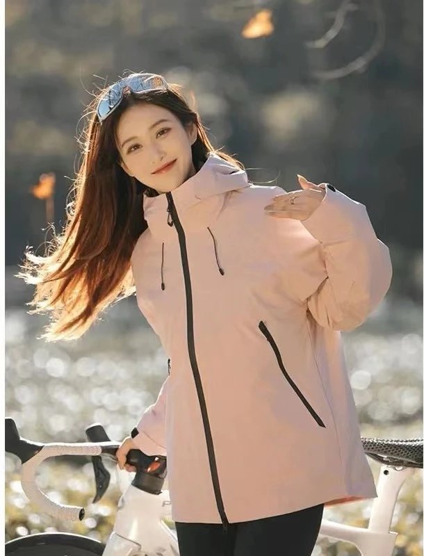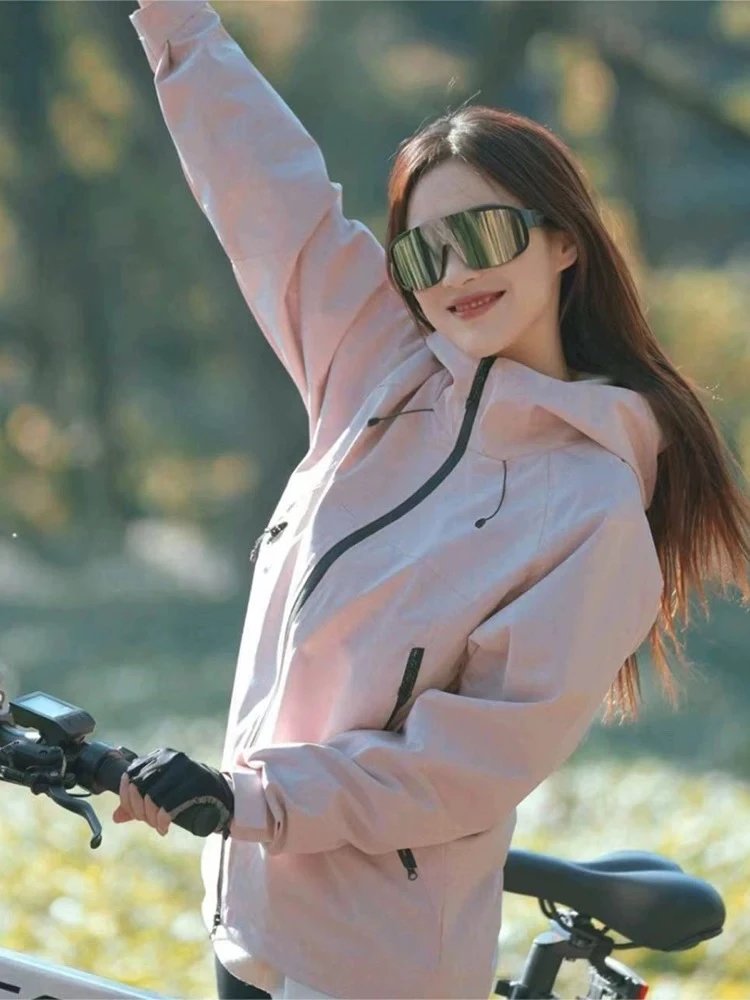 粉色冲锋衣不仅能让你在户外展现独特魅力,日常穿着也能瞬间变身可爱少女。