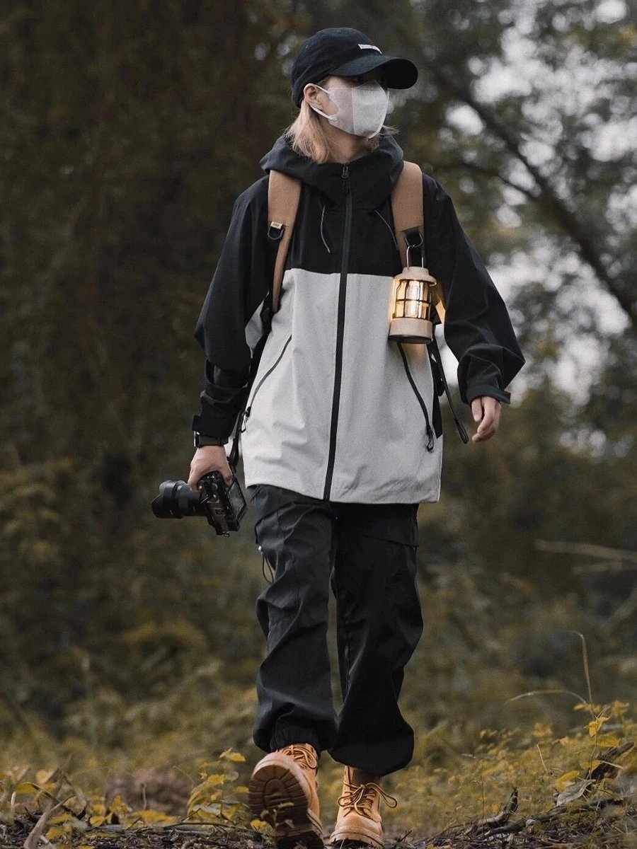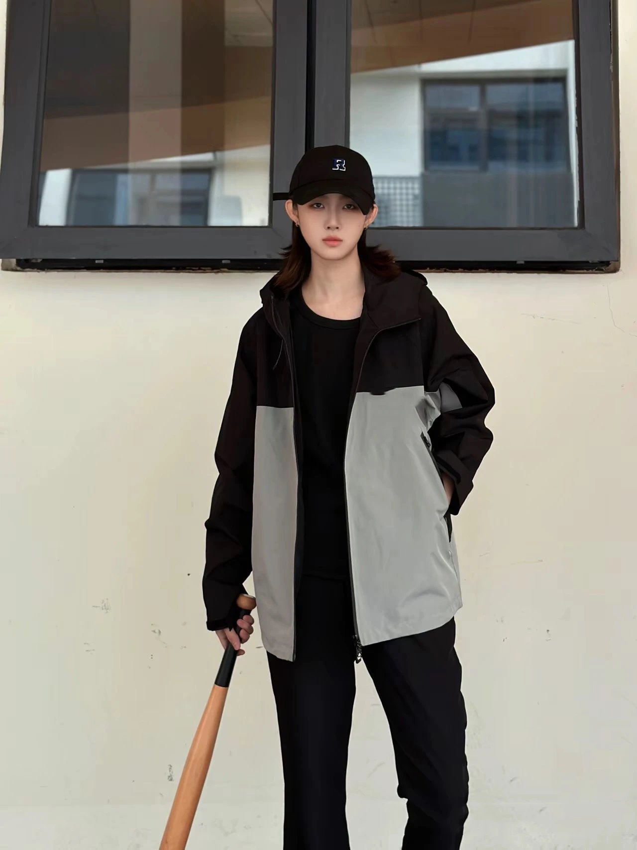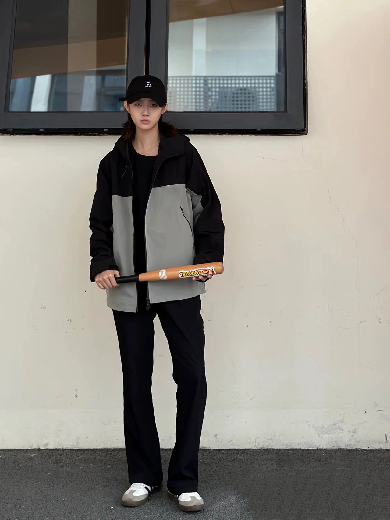 穿上这件黑拼灰冲锋衣,你就是街头zui靓的仔!
