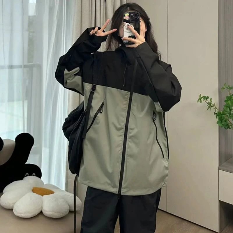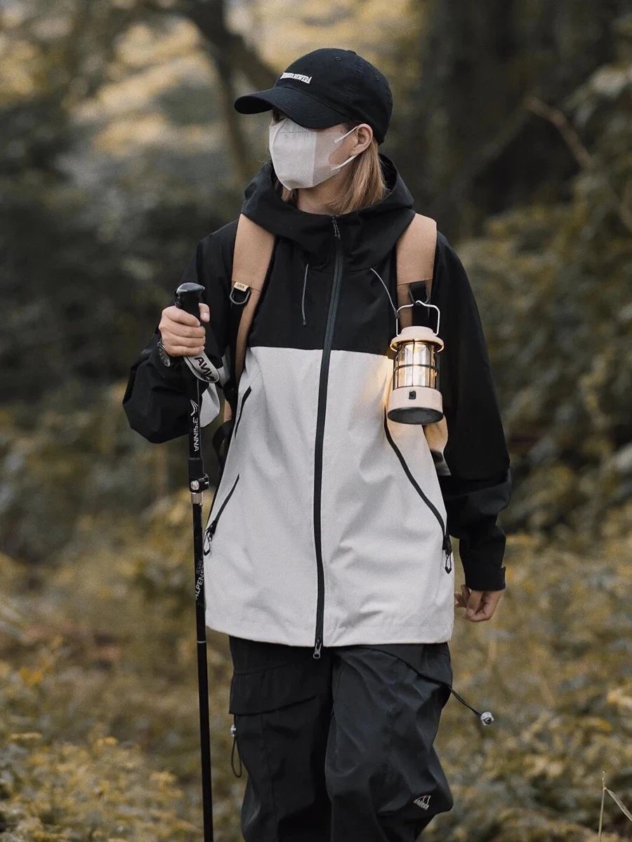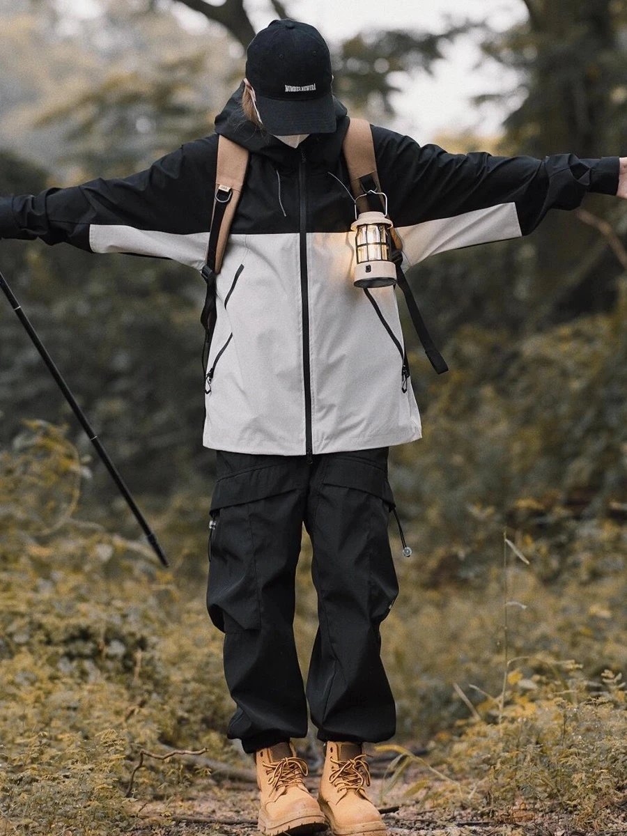 穿上这件黑拼灰冲锋衣,你就是街头zui靓的仔!