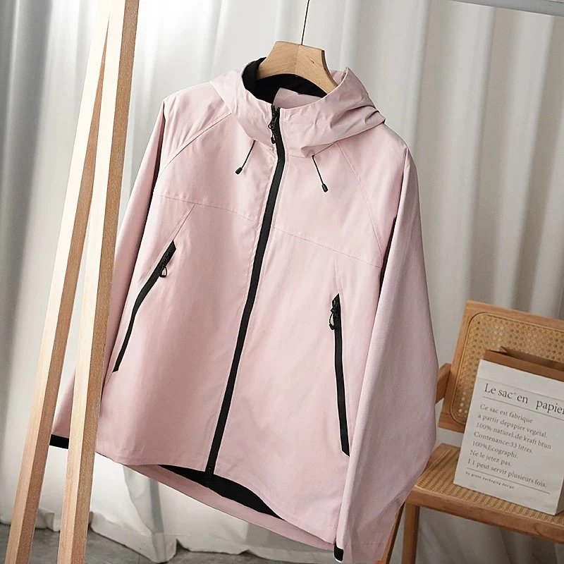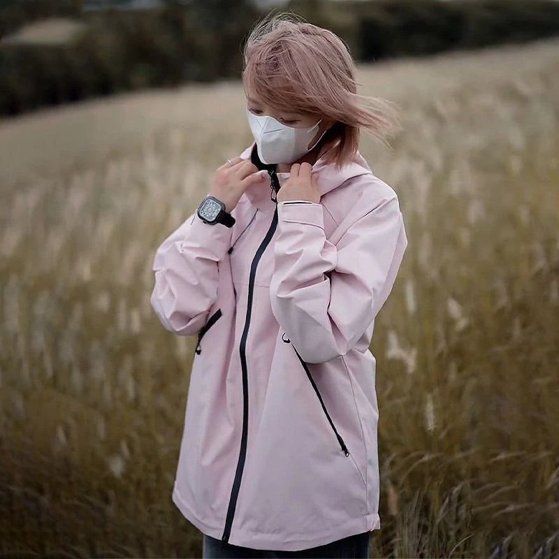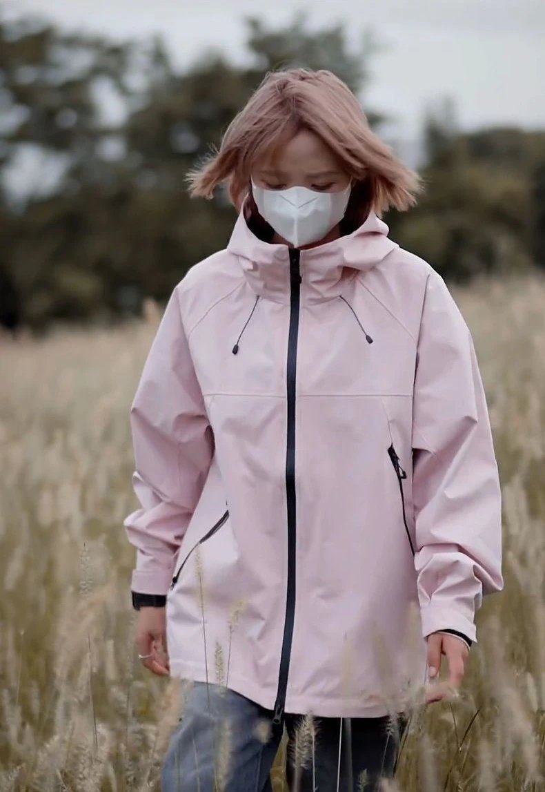 简直是甜酷女孩的必备!它打破了传统冲锋衣的硬朗印象,将温柔的粉色融入其中。